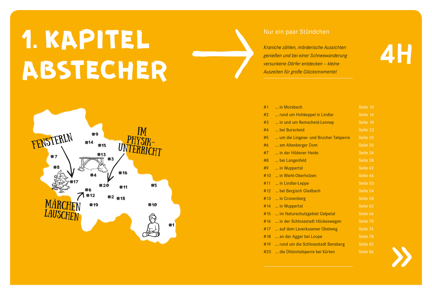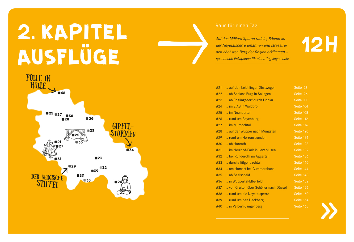 Abstecher. Ausflüge. Miniurlaube. Draußen unterwegs rund um Wuppertal, Wipperfürth und Waldbröl Ob wandern, radeln, paddeln oder in aller Ruhe die Natur genießen: 52 kleine und große Eskapaden machen Lust, die schönsten Ecken im Bergischen Land zu entdecken. ...