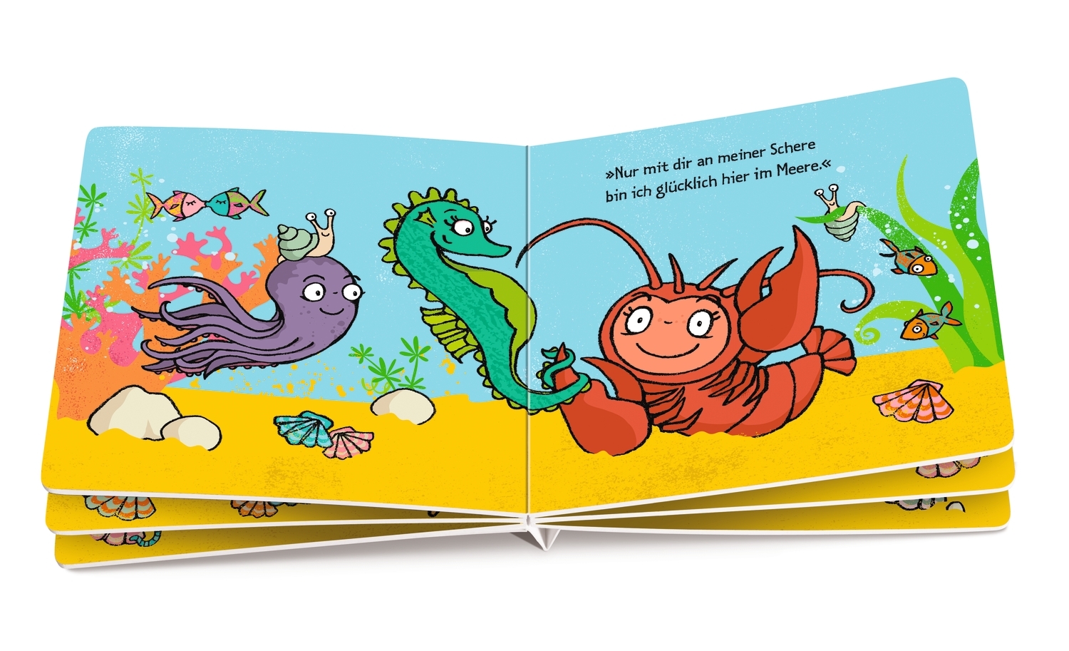 In "Der Hummer hat Kummer" wird die Geschichte eines kleinen Hummers erzählt, der tief betrübt ist. Die maritime Gemeinschaft, darunter die Scholle, Muscheln, ein Seestern und viele andere Meeresbewohner, versucht, ihn mit Umarmungen, Kuscheln und Trost zu er...