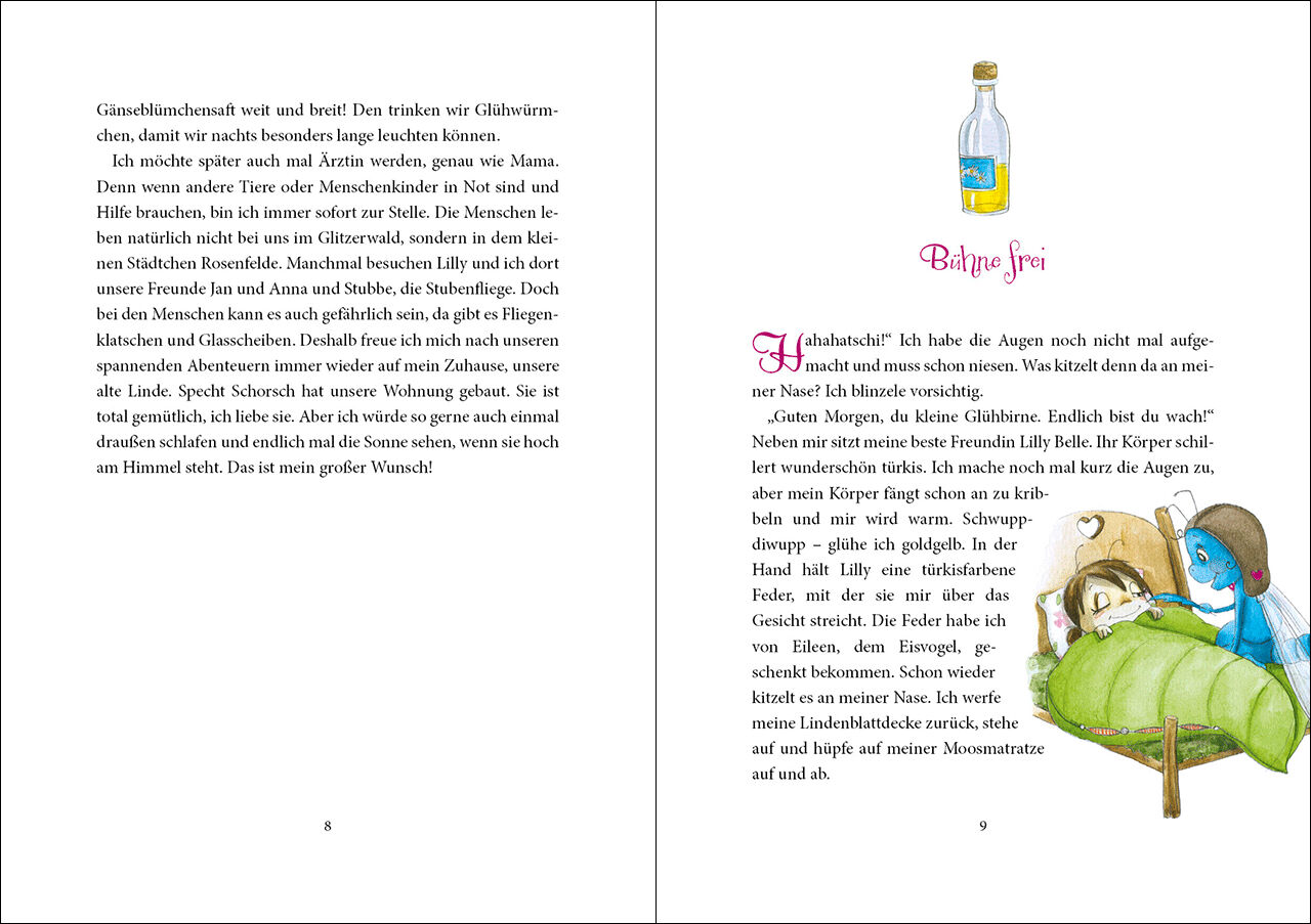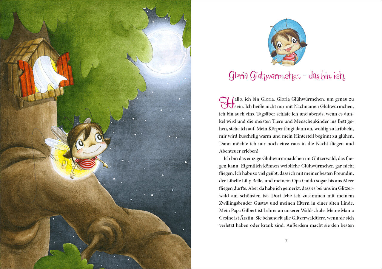 Gloria Glühwürmchen ist wieder unterwegs im nächtlichen Glitzerwald so wie es sich für ein Glühwürmchen gehört! Aber Gloria hat nun mal ihren eigenen Kopf und möchte auch einmal den Sonnenaufgang miterleben. Außerdem ist der Gänseblümchensaft leer und nirgendw...