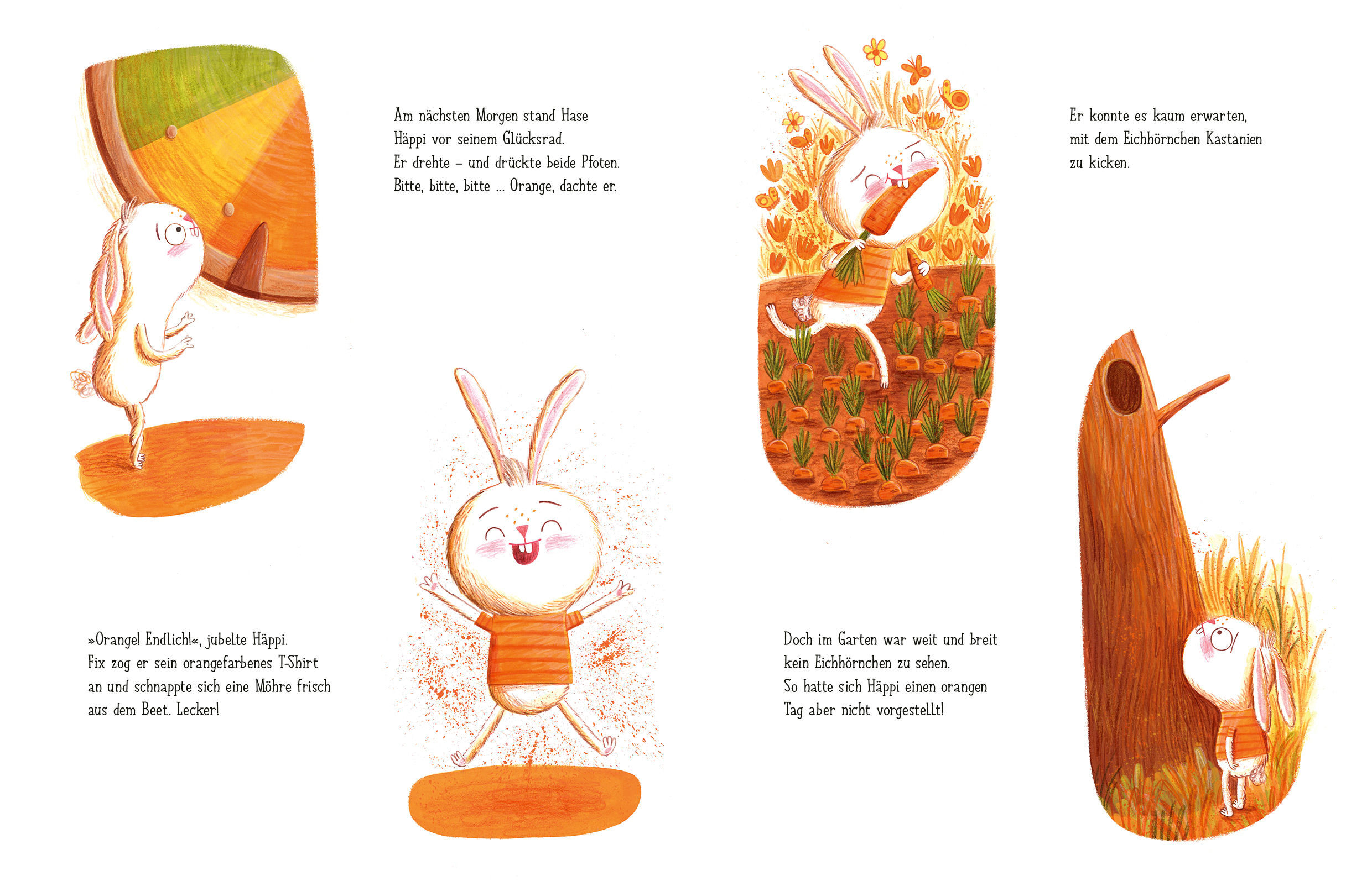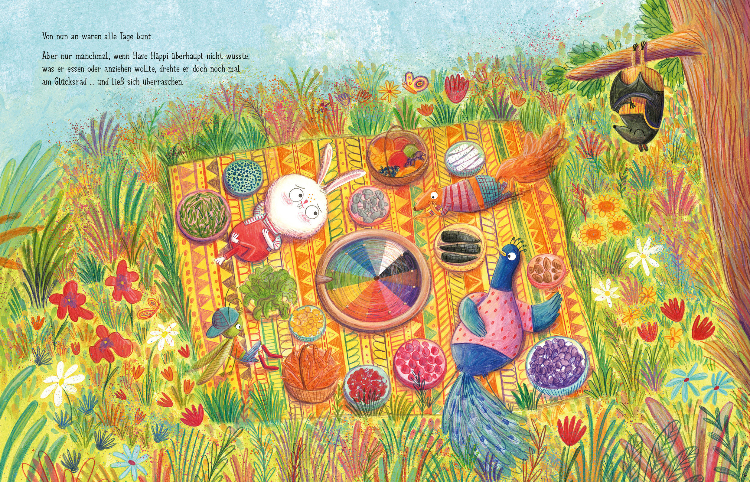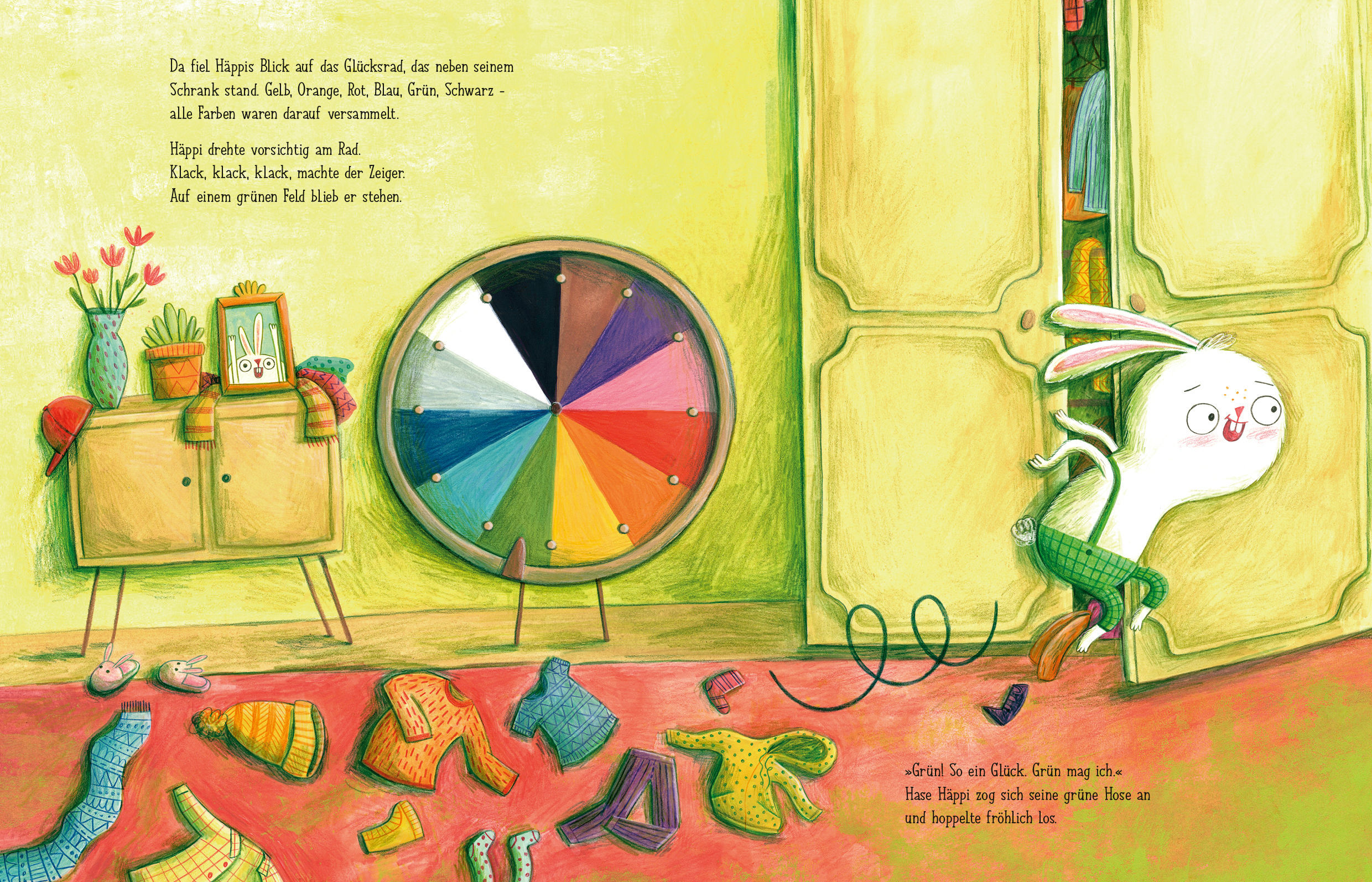 Dieses Bilderbuch macht glücklich Hase Häppi ist gar nicht froh: Jeden Tag muss er überlegen, was er anziehen soll, mit wem er spielen mag und was es zum Essen gibt. Ratzfatz beschließt Häppi, dass ab sofort das Glücksrad entscheidet: Blau für den blauen Schal...