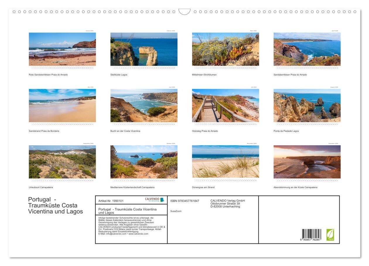 Portugal - Traumküste Costa Vicentina und Lagos (Wandkalender 2026 DIN A2 quer), CALVENDO Monatskalender