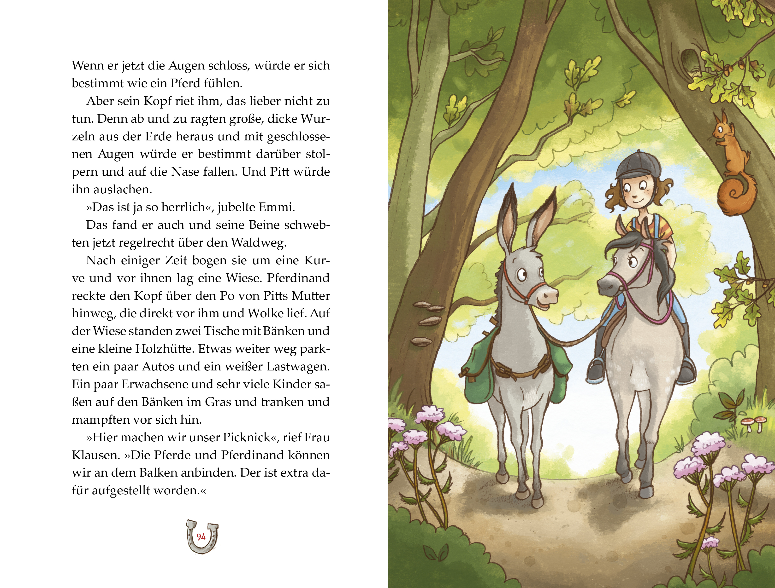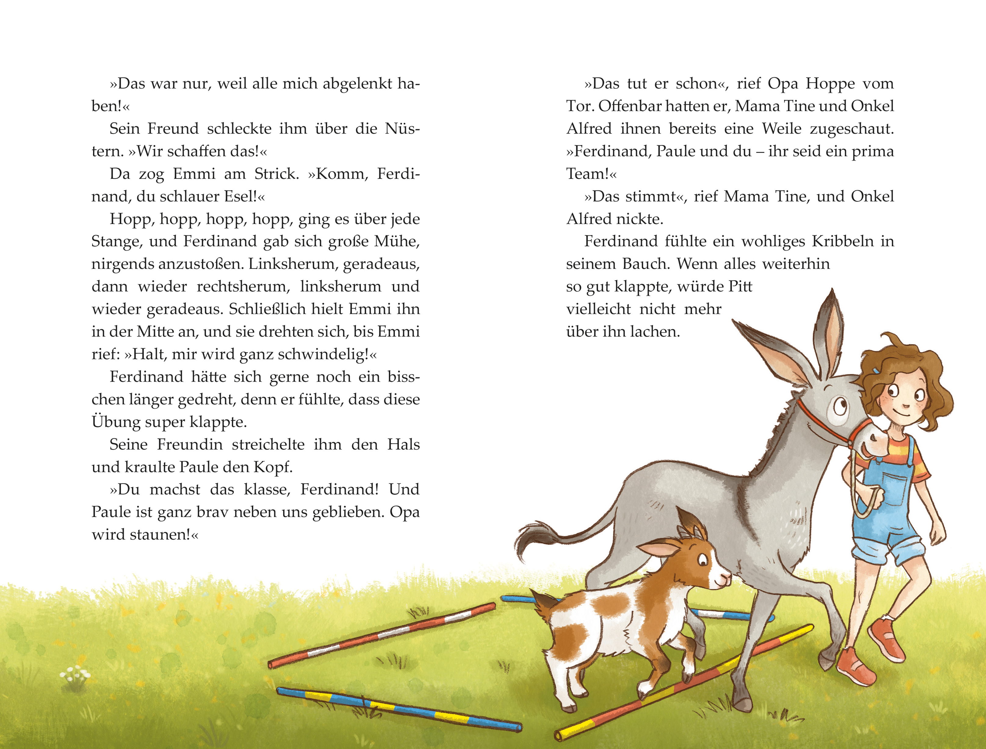 Der Eseljunge Ferdinand hat einen ungewöhnlichen Herzenswunsch: Er würde gerne ein Pferd sein! Kurzerhand ändert er seinen Namen in Pferdinand und beginnt, unterstützt von seinem besten Freund, dem Ziegenbock Paule, und Ponymädchen Wolke, das Training: elegant...