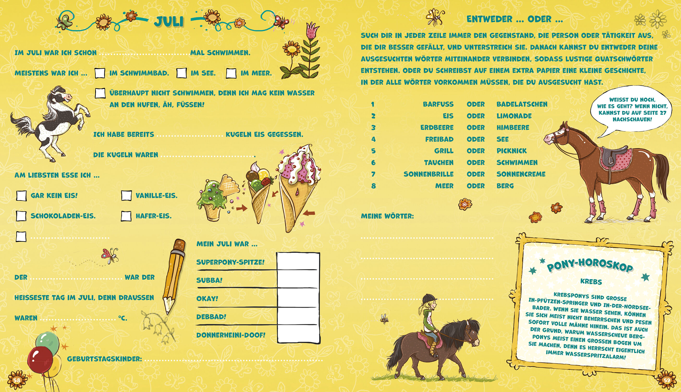 Witziges Eintragbuch für Pferdefans ab 8 Jahren. Alle kleinen Zweibeiner, die genauso gerne Abenteuer erleben wie die Ponys vom Blümchenhof, finden in diesem Eintragbuch jede Menge Platz zum Reinschreiben, Ankreuzen und Zeichnen. • Was waren deine witzig...