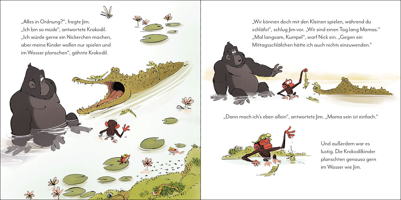 Loewe-Bücher: garantiert ohne KI Es ist ein herrlicher Tag! Aber Mama Krokodil ist schrecklich müde, denn ihre Kinder wollen die ganze Zeit spielen und planschen. Jim bietet seine Hilfe an und springt als Mama für den Tag ein. Wie schwer kann das schon sein? M...