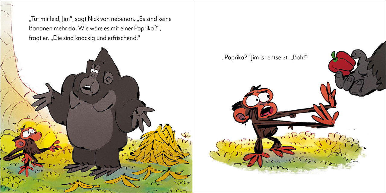 Jim ist hungrig Zeit für eine Banane! Doch sein Freund Nick hat alle aufgegessen. Und bietet ihm stattdessen eine Paprika an. Bäh! So was probiert Jim ganz sicher nicht! Oder? Für alle, die beim Essen ein bisschen wählerisch sind Witziges Pappbilderbuch mit de...