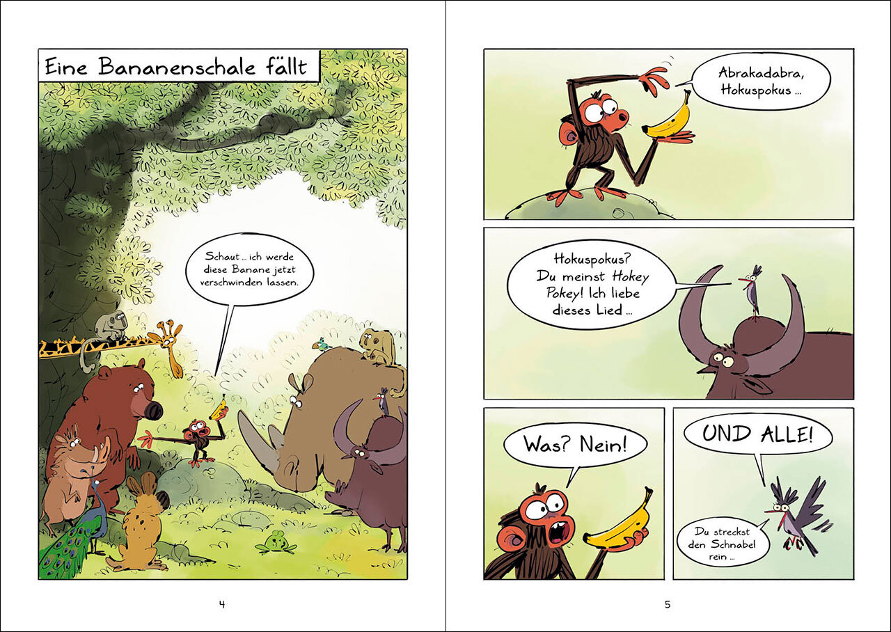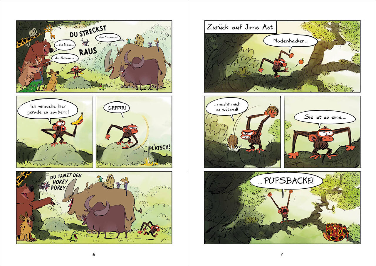 Jim war's nicht! Oder etwa doch? Jim ist mies drauf: Erst interessieren sich die anderen Tiere nicht für seinen Zaubertrick, dann wird er in die Wüste verbannt. Und das nur, weil er Madenhacker angeblich mit einer Bananenschale beworfen hat! Nick begleitet sei...