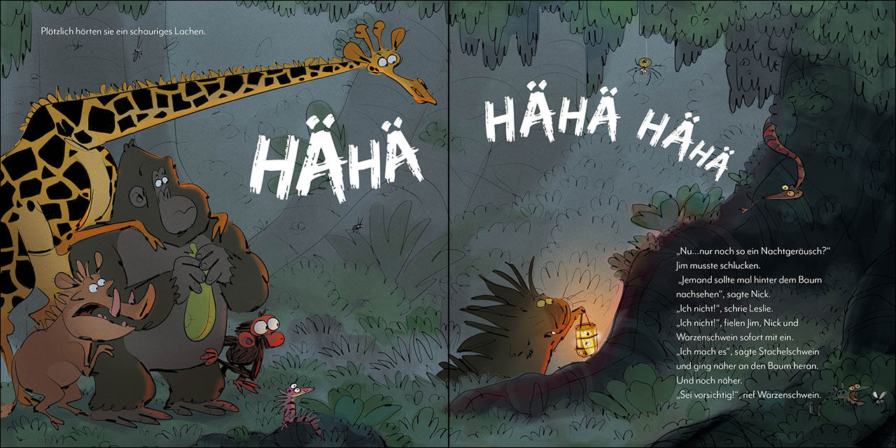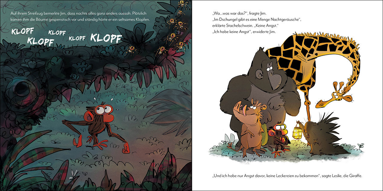 Jim hat niemals Angst. Nicht einmal, wenn er mitten in der Nacht mit seinen Freunden im Dschungel unterwegs ist! Daran können auch ein merkwürdiges Klopfen und ein ganz eigenartiger Gestank nichts ändern: ICH HABE KEINE ANGST!, ruft Jim. Doch als zwei leuchten...