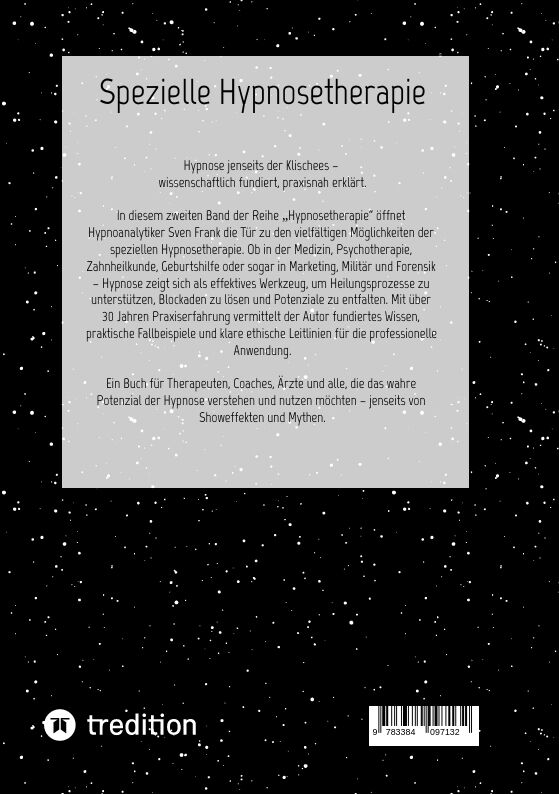 Das Buch Hypnosetherapie Band 2: Spezielle Hypnosetherapie von Sven Frank beschäftigt sich umfassend mit den fortgeschrittenen und spezialisierten Einsatzgebieten der Hypnose. Es baut auf dem ersten Band auf, der sich mit Grundlagen und Techniken befasst, und ...