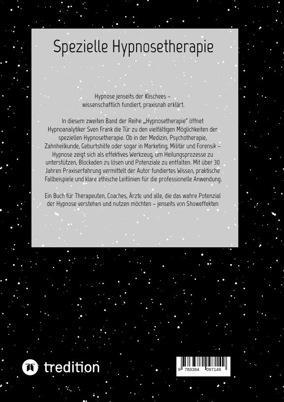 Das Buch Hypnosetherapie Band 2: Spezielle Hypnosetherapie von Sven Frank beschäftigt sich umfassend mit den fortgeschrittenen und spezialisierten Einsatzgebieten der Hypnose. Es baut auf dem ersten Band auf, der sich mit Grundlagen und Techniken befasst, und ...
