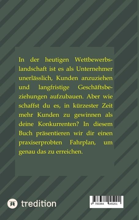 In der heutigen Wettbewerbslandschaft ist es als Unternehmer unerlässlich, Kunden anzuziehen und langfristige Geschäftsbeziehungen aufzubauen. Aber wie schaffst du es, in kürzester Zeit mehr Kunden zu gewinnen als deine Konkurrenten? In diesem Buch präsentiere...