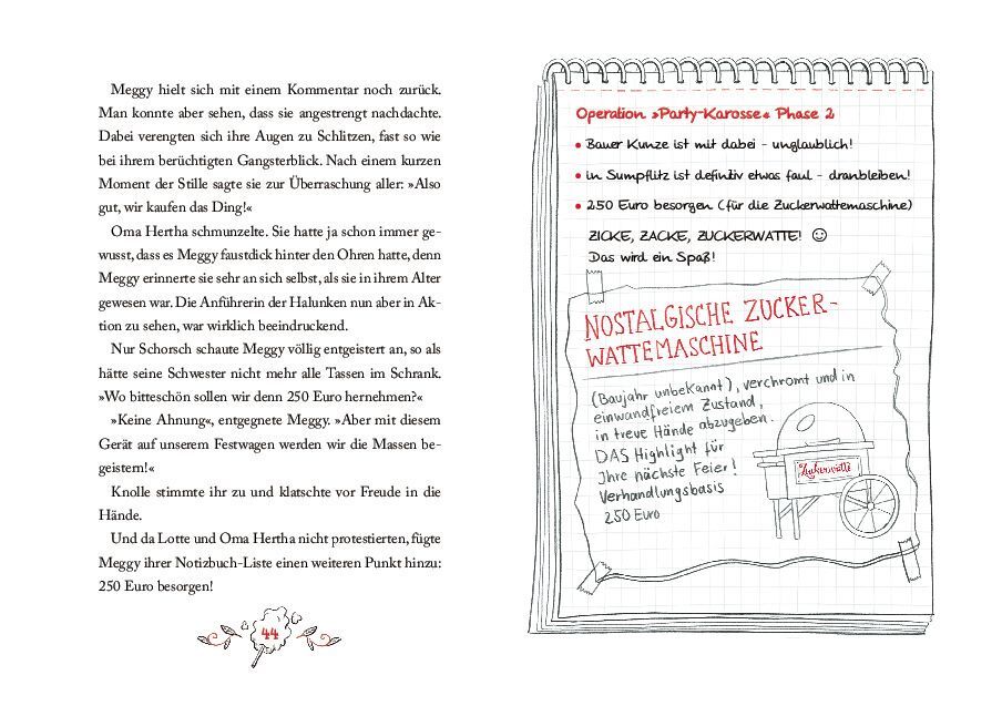 »Hat ein Dorf was zu verstecken, kann man's nur mit List entdecken.« Die Heuhaufen-Halunken schmieden einen tollkühnen Plan: Zusammen mit Oma Hertha wollen sie unbedingt den Festwagen-Wettbewerb beim großen Jubiläumsumzug gewinnen. Denn dem Dorf mit dem schöns...
