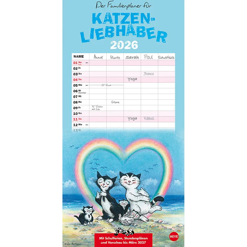 Mit dem gut gelaunten Kult-Kater durch das Jahr: Der Jacob Familienplaner 2026 ist da! - Täglich schmunzeln mit den fröhlichen Illustrationen von Sven Hartmann: Jacob und seine Katzen-Familie zaubern Klein und Groß ein Lächeln auf die Lippen - Organisationsh...