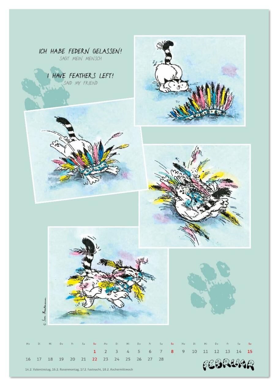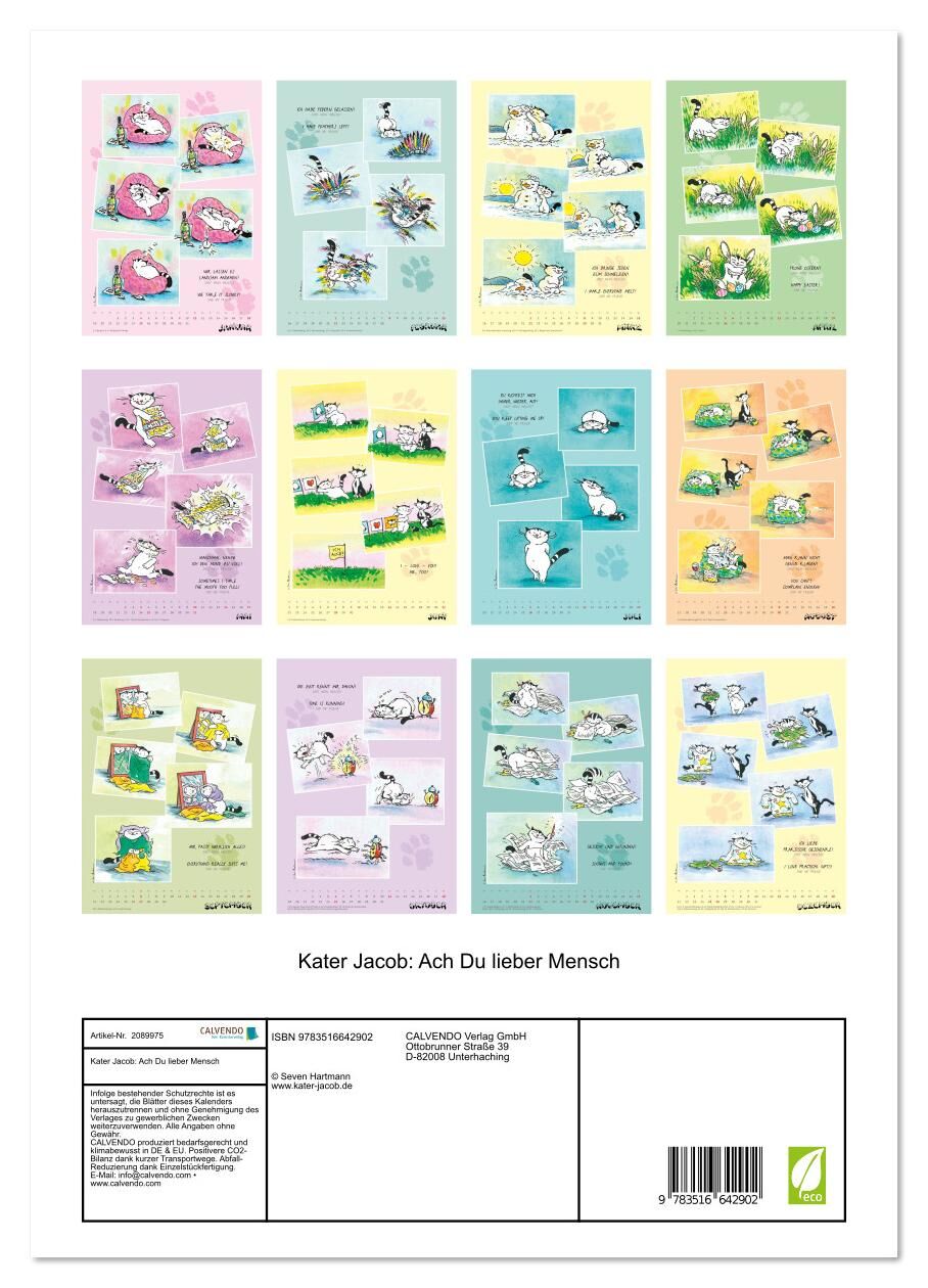Keiner sagt es so schön, wie Kater Jacob, liebevoll gezeichnet von Sven Hartmann: Mensch und Katze sind ein unzertrennliches Paar. Dieser Kalender begleitet Sie mit 12 farbenfrohen Motiven durch das Jahr.