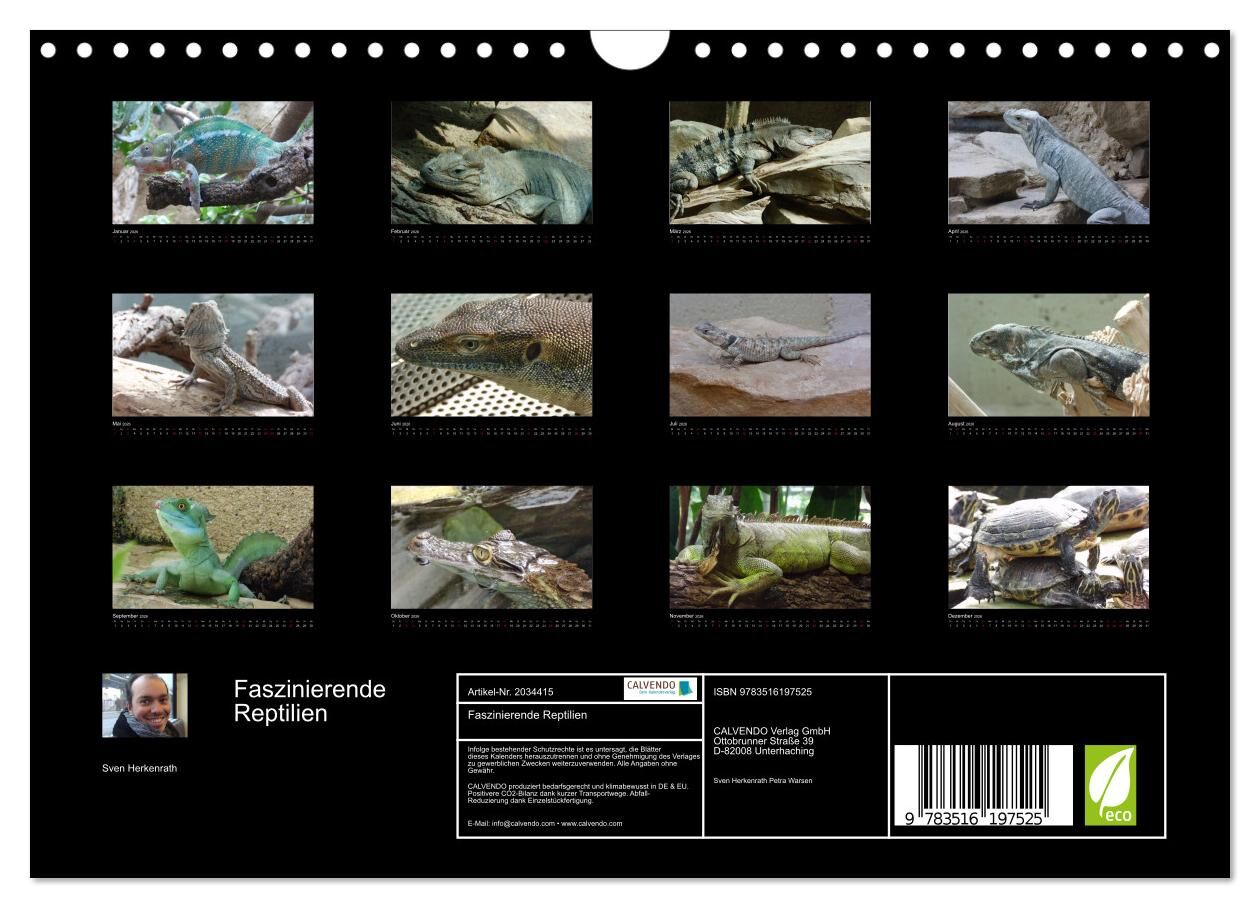 Einzigartiger Reptilien Kalender. Holen sie sich mit diesem Kalender ein Stück exotischer Tiere nach Hause. Ein ideales Geschenk für jeden Anlass oder einfach nur für sich selber.