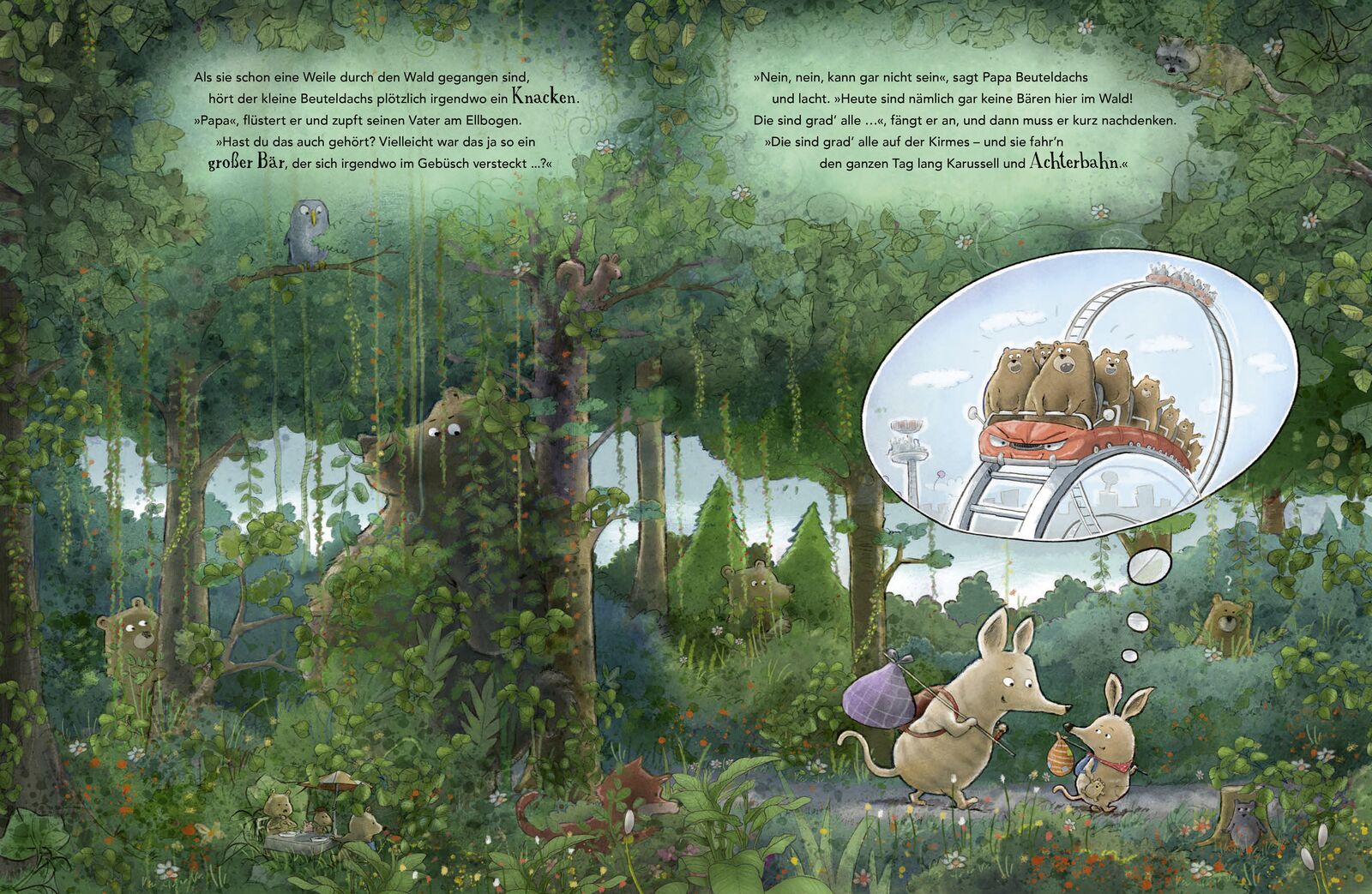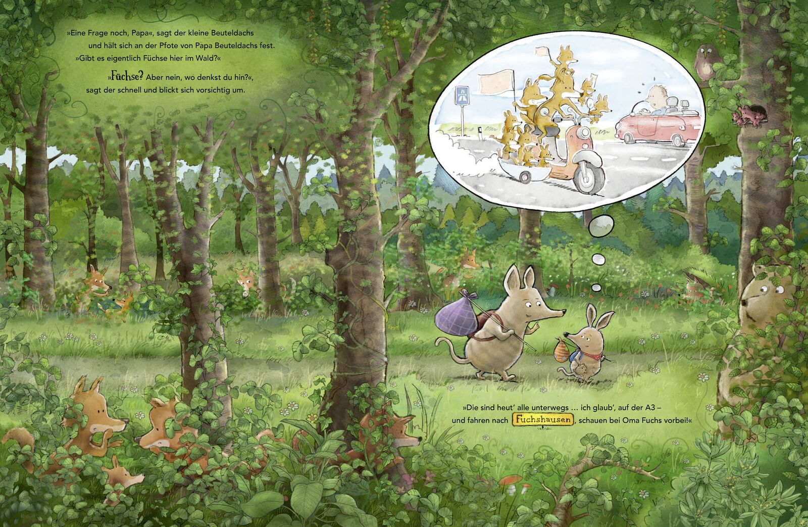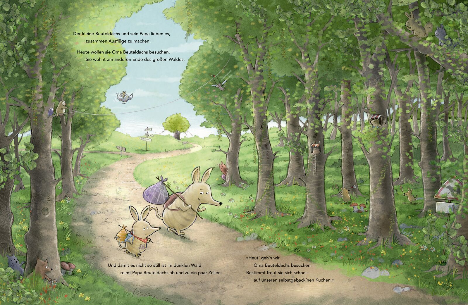 Eine humorvolle Vater-Sohn-Geschichte über kindliche Neugier und großen Mut. Ideal für kuschelige Vorlesestunden Der kleine Beuteldachs und sein Papa wollen die Oma besuchen. Und dazu müssen sie durch den Wald. Unheimlich!, findet der kleine Beuteldachs. Es k...