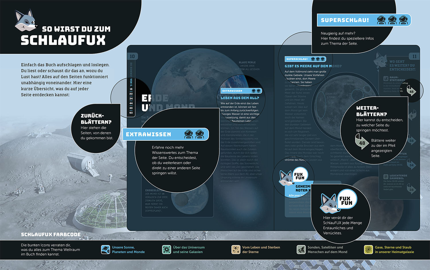 Mit dem SchlauFUX interaktiv das Weltraumthema entdecken. Dieses Buch bietet Kindern die Möglichkeit, eigenständig Wissen zu sammeln und die Inhalte in beliebiger Reihenfolge zu erkunden. Themen wie Schwarze Löcher, Gaswolken und Planeten werden spielerisch ve...