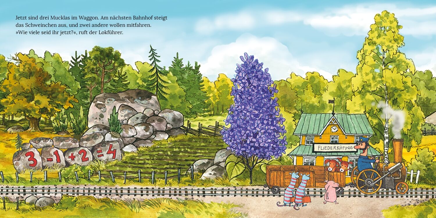 Alle Mucklas einsteigen! Mit den Mucklas spielerisch zählen lernen Einsteigen, mitzählen und lachen mit den Mucklas aus der Welt von Pettersson und Findus! Im Bahnhof Mucklabü wartet der Zug und mit ihm jede Menge witzige Mucklas, die ein- und aussteigen möcht...Alle Mucklas einsteigen!