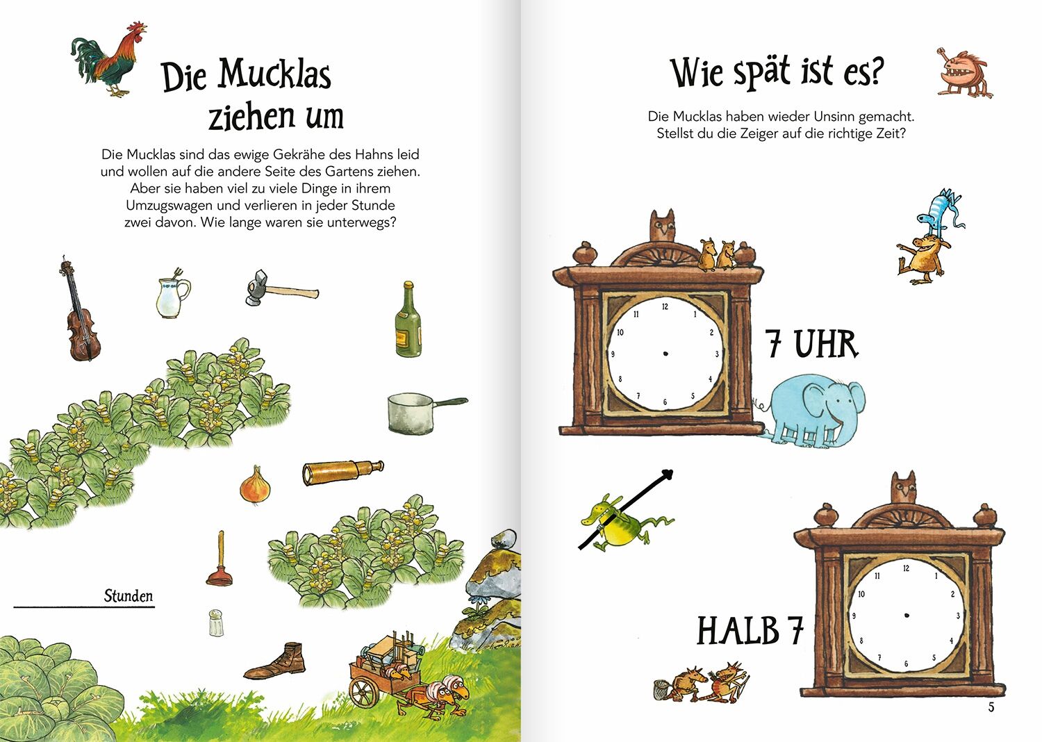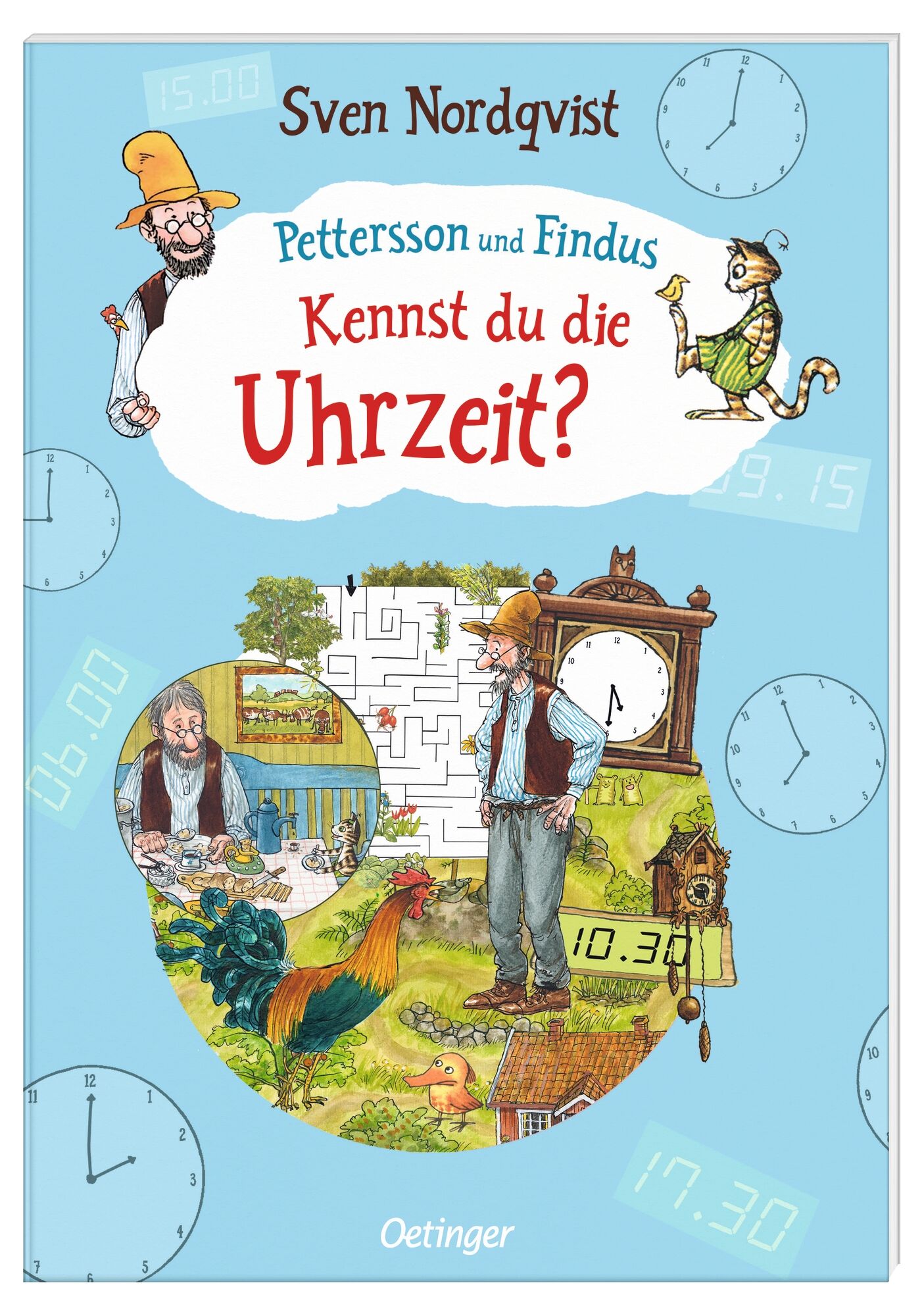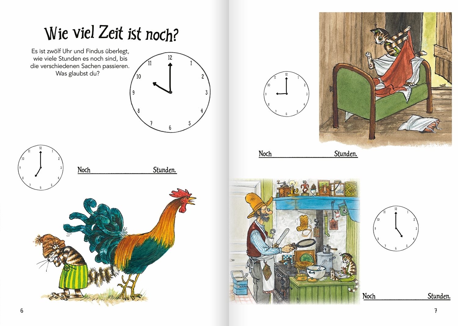 Mit Pettersson und Findus die Uhr lernen wann ist es Zeit zum Hüpfen? Findus möchte wissen, wie spät es ist. Aber er kann die Uhr noch gar nicht lesen. Hilf ihm herauszufinden, mit welchem Zeiger man die Stunden und Minuten abliest, wann es Zeit zum Aufstehen...