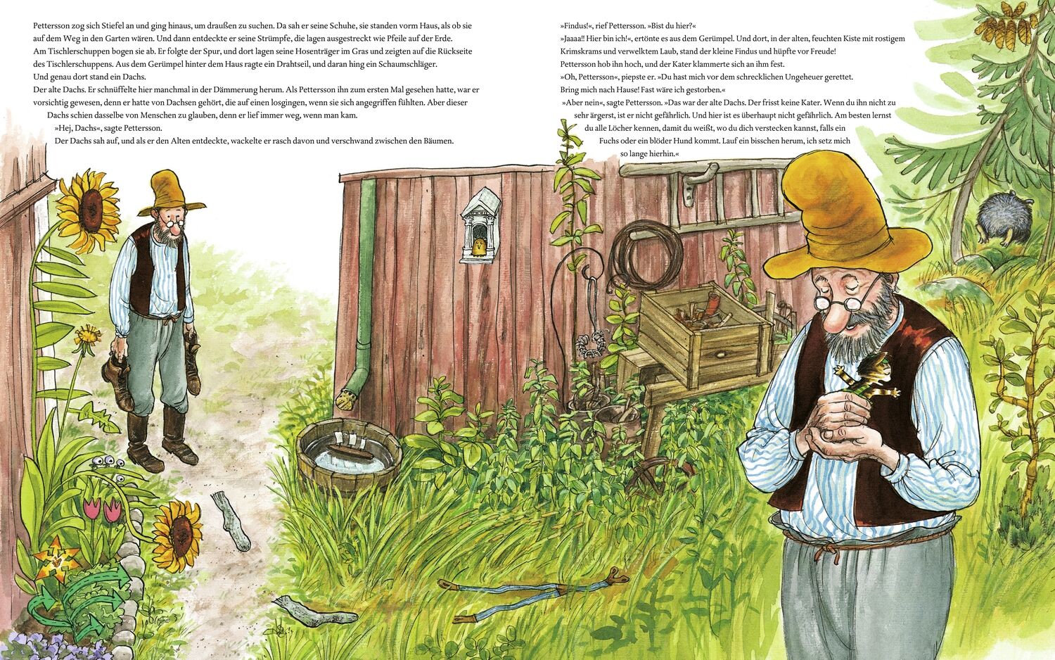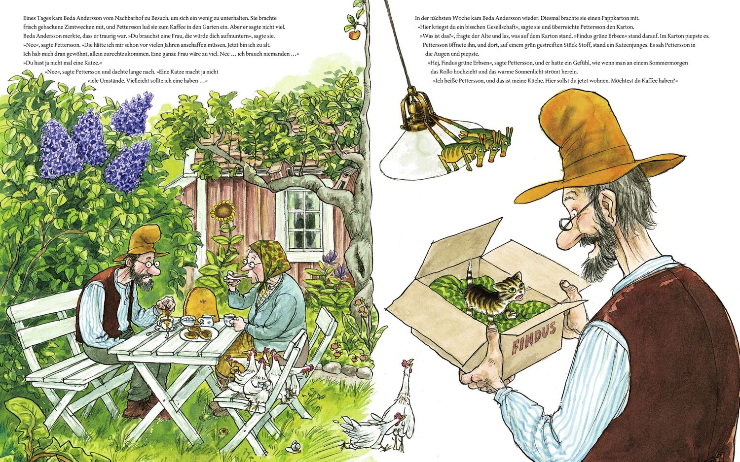 Eine Freundschaft fürs Leben Es war einmal ein Pappkarton mit grünen Erbsen drin. Als die aufgegessen waren, kam etwas anderes hinein: Ein kleiner Kater, der gerade in eine Hand passte. Er war ein Geschenk für den alten Pettersson. Der freute sich so sehr, al...