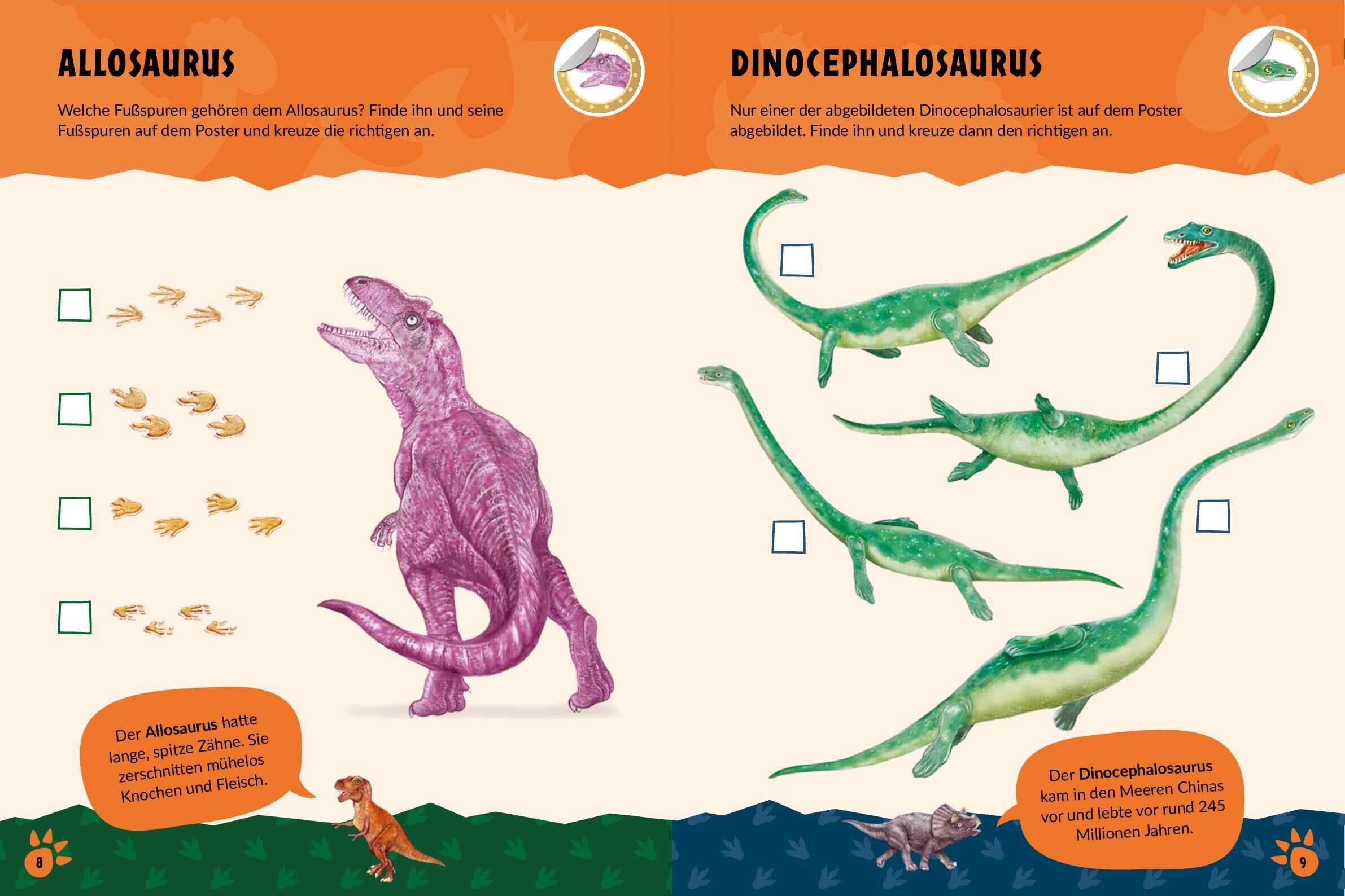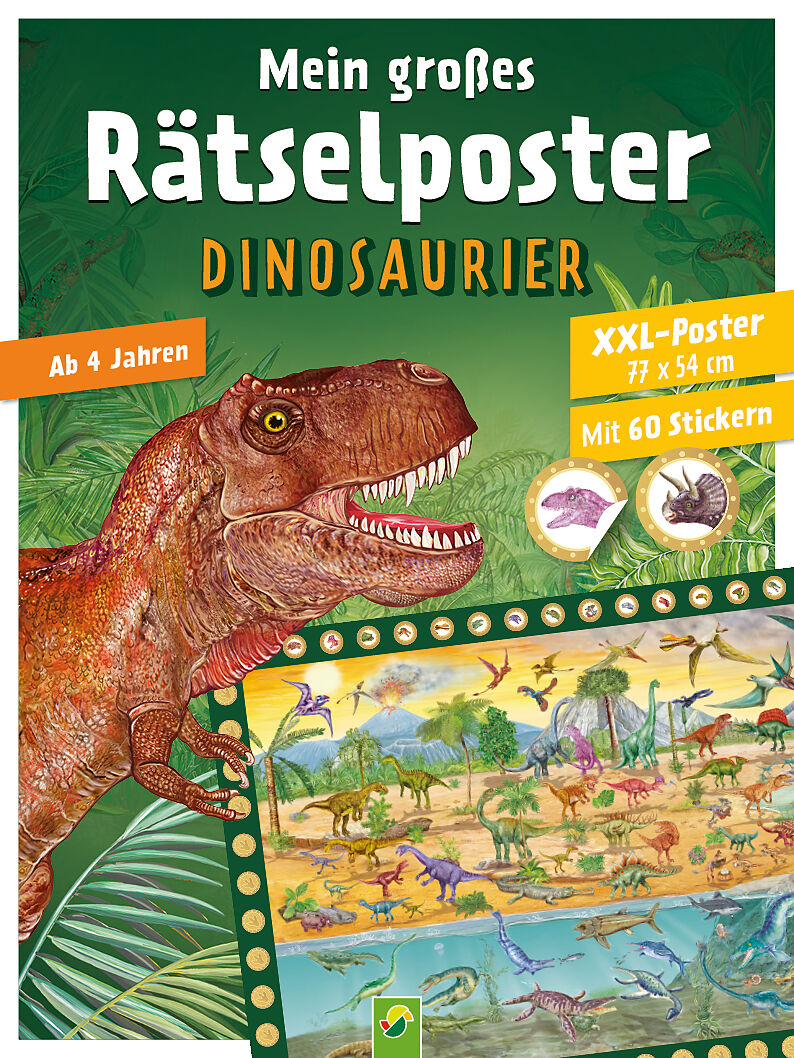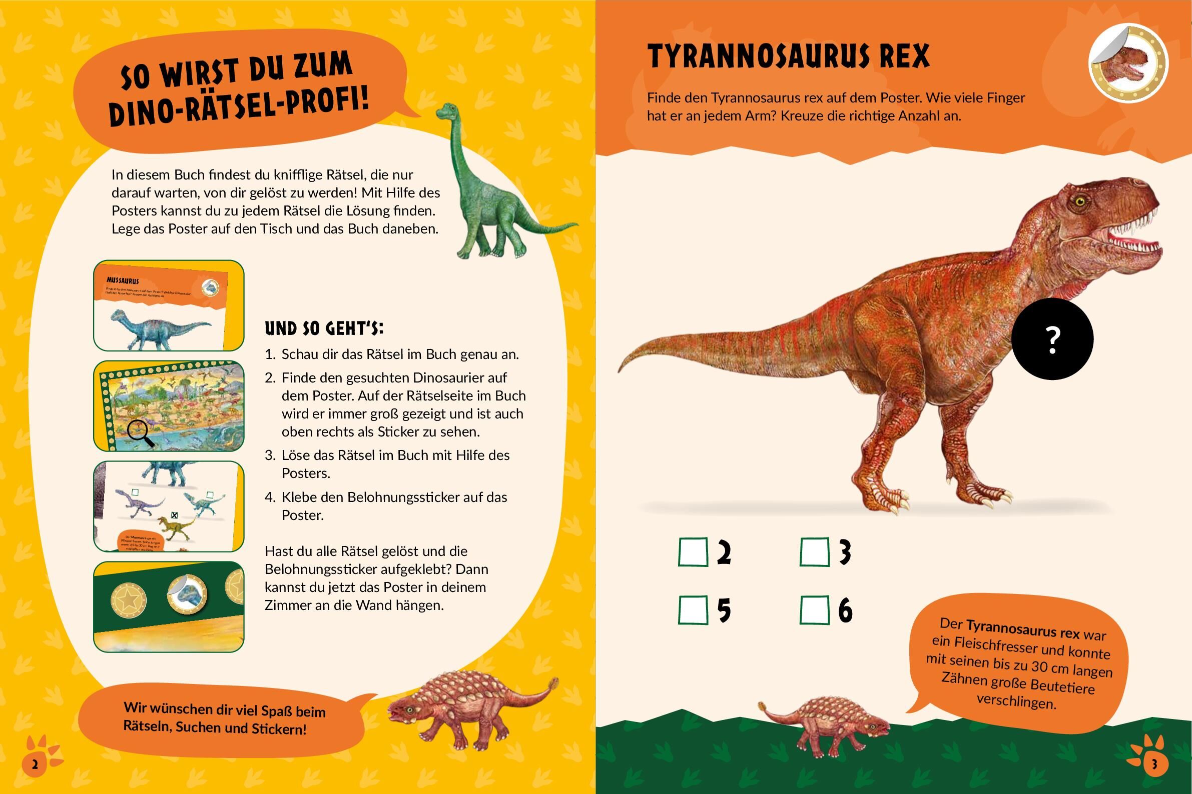 Löse die kniffligen Dinosaurier-Rätsel im Buch mit Hilfe des XXL-Posters! • 3 in 1: Rätselbuch, bunte Dinosaurier-Sticker und XXL-Poster im Format 77 x 54 cm • Mit motivierenden Belohnungs-Stickern • XXL-Dinosaurier-Poster als Zimmerdekoration ...