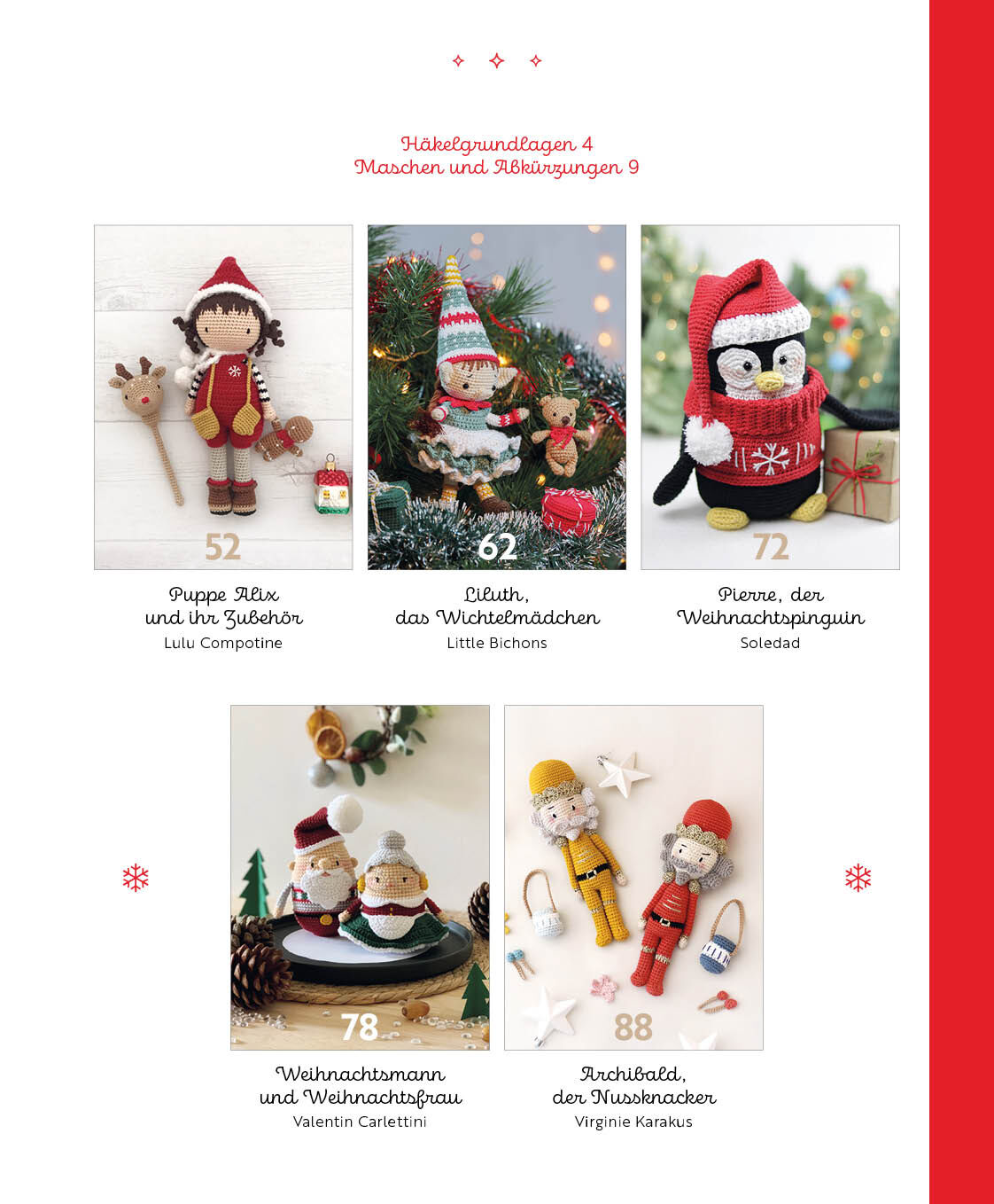 All I Want for Christmas is ... süße Häkelfiguren! Lass dich verzaubern von niedlichen Weihnachts-Amigurumis und ihren treuen Begleitern: Vom kleinen Mädchen Alix mit Lebkuchenmann-Teddy und Rentier-Steckenpferd, über Rudolf oder Elf, bis hin zu Weihnachtsman...