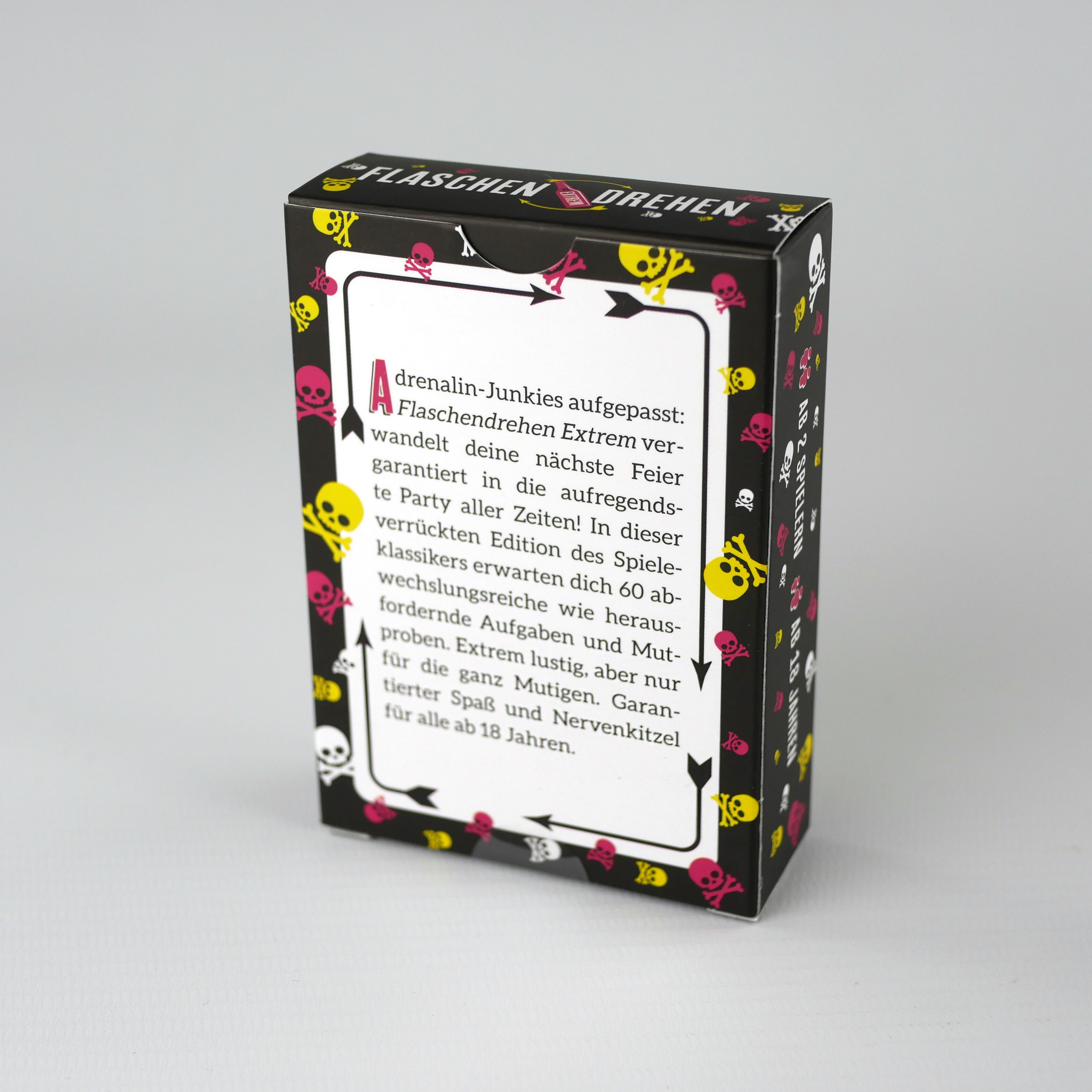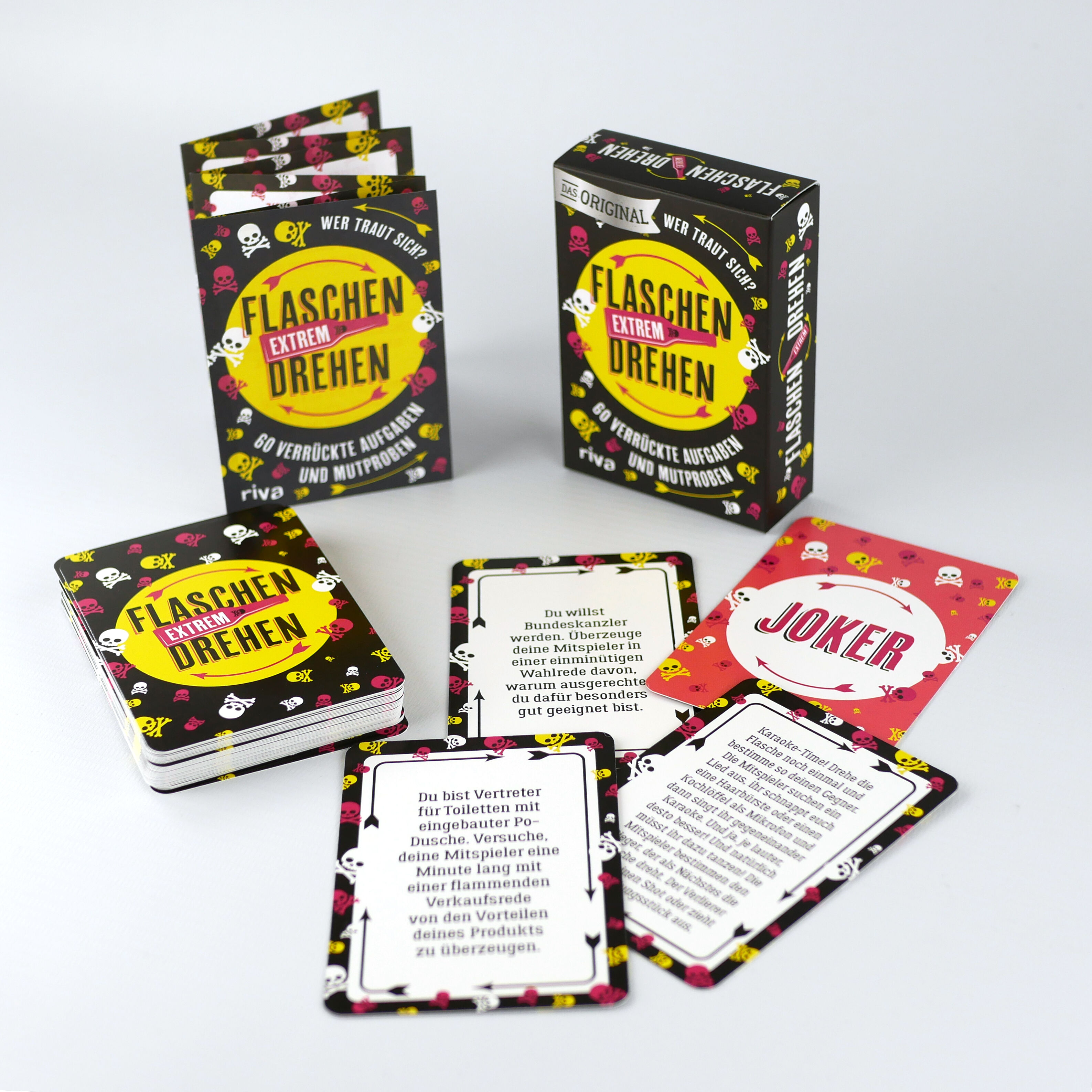 Flaschendrehen ist der Klassiker unter den Partyspielen. Doch mit Kindergeburtstag hat das hier wenig zu tun! »Flaschendrehen Extrem« ist die Herausforderung der Herausforderungen: 60 verrückte Aufgaben und Mutproben erwarten die ganz Mutigen. Bei diesem Karte...