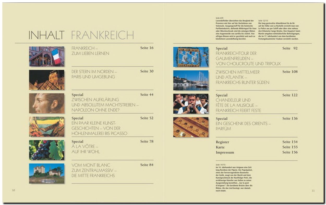 Leuchtende Lavendelfelder in der Provence, weiße Kreidefelsen in der Normandie, die Weiten der Camargue, die rauen Bergwelten der Alpen oder Pyrenäen, liebliche Flusslandschaften an der Loire oder Rhône Frankreich bietet einen bunten Teppich unvergleichlicher ...