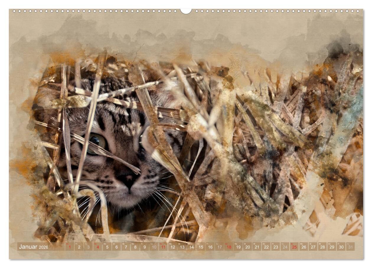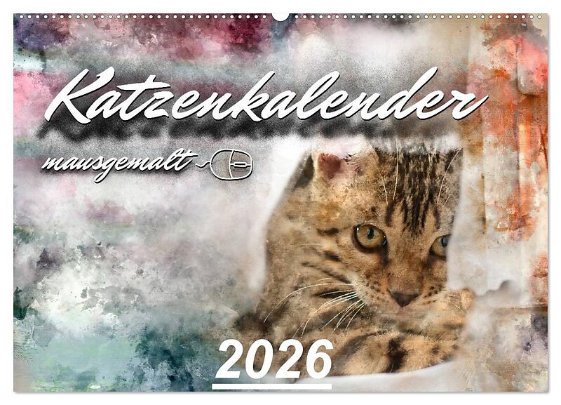 Katzenkalender mausgemalt (Wandkalender 2026 DIN A2 quer), CALVENDO Monatskalender