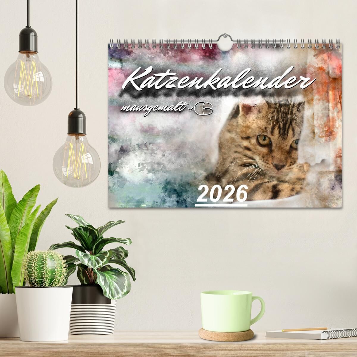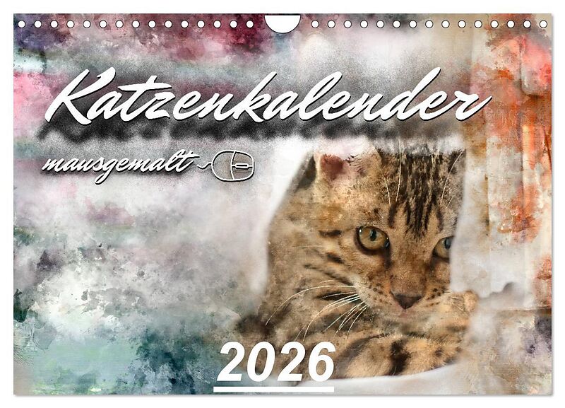 Katzenkalender mausgemalt (Wandkalender 2026 DIN A4 quer), CALVENDO Monatskalender