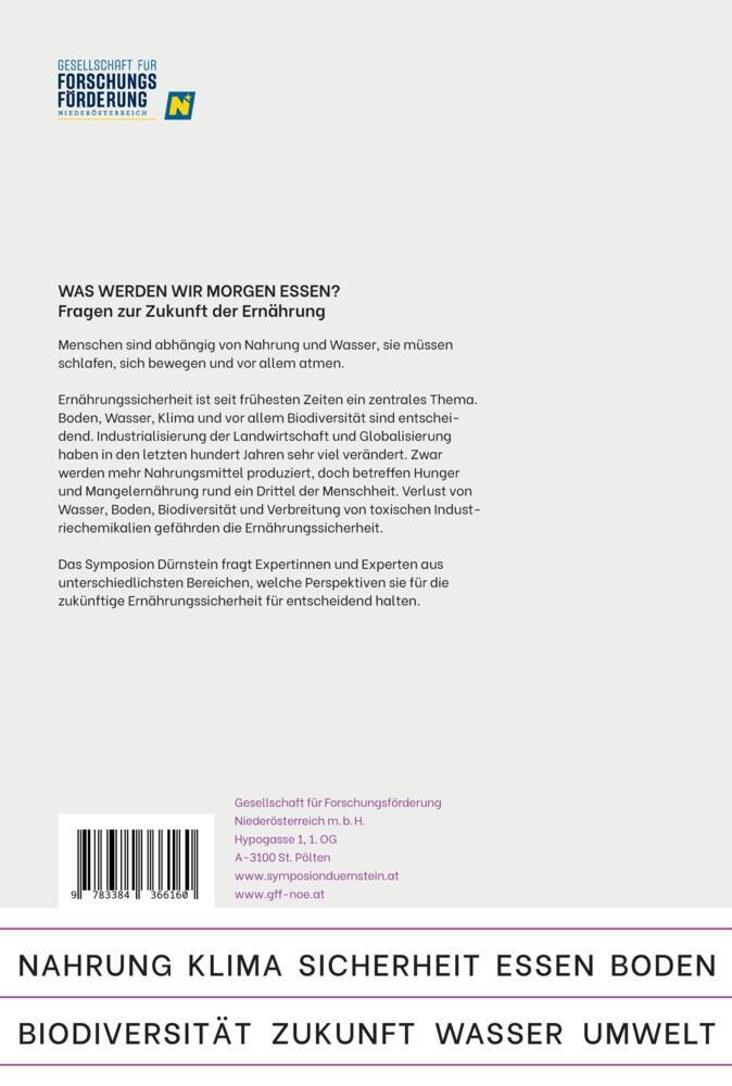 Dieser Tagungsband dokumentiert das Symposium Dürnstein 2024 zum Thema WAS WERDEN WIR MORGEN ESSEN? Fragen zur Zukunft der Ernährung, das vom 14. bis 16. März in Dürnstein in Niederösterreich stattfand. Er enthält Vorträge und Diskussionsrunden dieser Veransta...