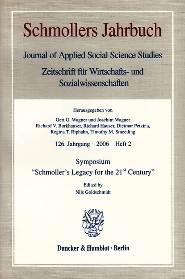 Exactly 125 years ago, in the year 1881, Gustav Schmoller became the editor of "Schmollers Jahrbuch". The purpose of this special issue is to open the debate on Schmoller's legacy. This debate should not seek to answer the question of whether Schmoller as an e...