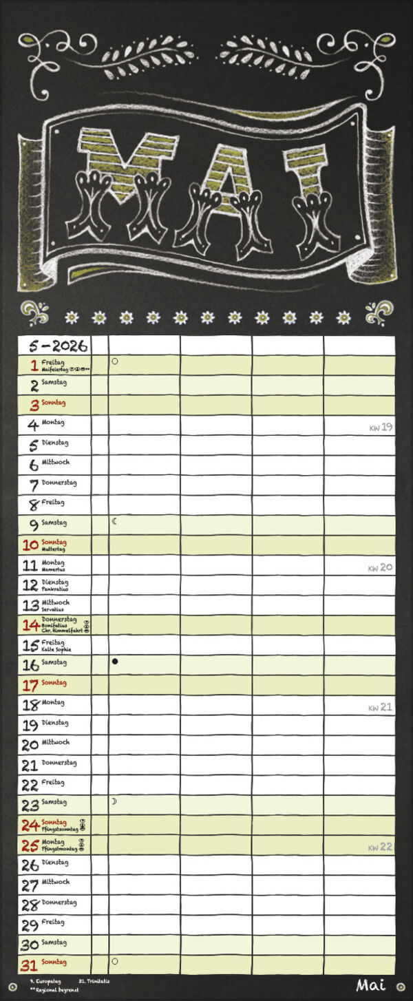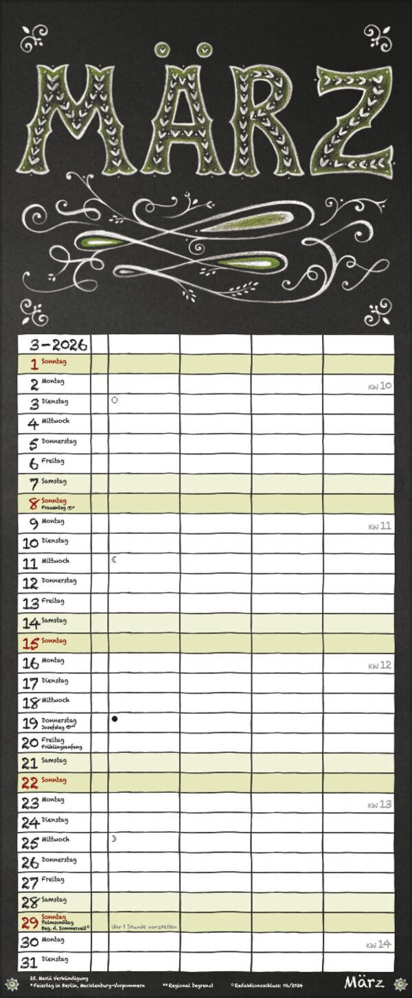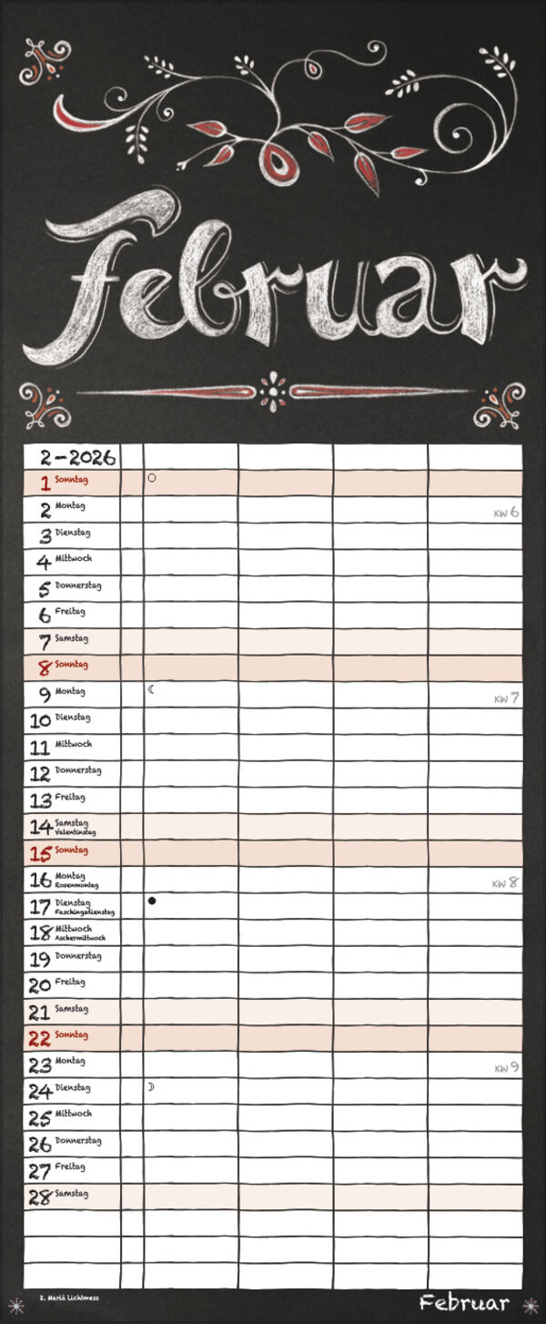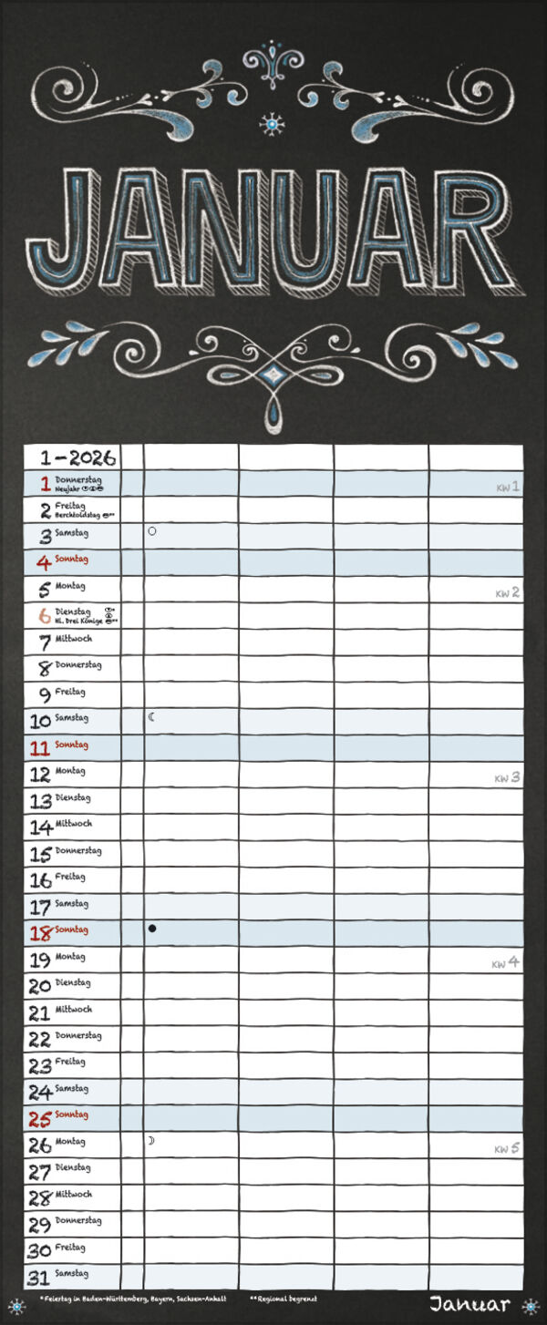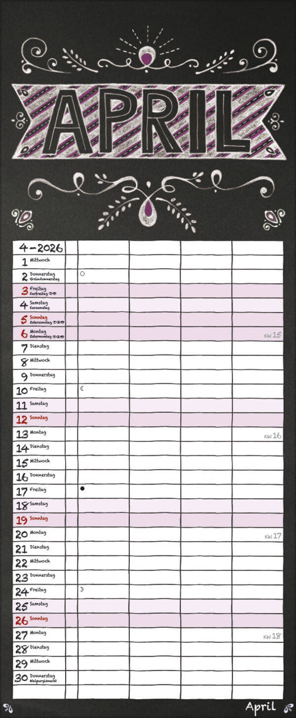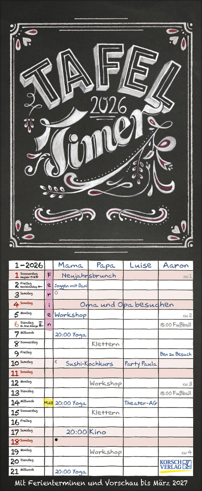 Korsch Familienkalender - Produktmerkmale Übersichtlicher Familienplaner für bis zu 4 Personen; sehr stabile Rückwand; 19 x 46 cm Terminkalender mit viel Platz für Eintragungen, ohne störende Bilder in den Spalten leichte Beschreibbarkeit, auch mit Bunt- und ...