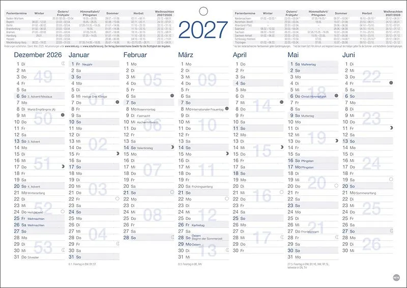 - Für den schnellen Überblick: Kalender 2027 mit Schulferien und genügend Platz für Eintragungen - Büro-Organisation, Meetings und Co: Mit dem Kalenderposter 2027 im handlichen A4-Format sind alle Termine fest im Blick - Volle Konzentration auf das Wesentliche...