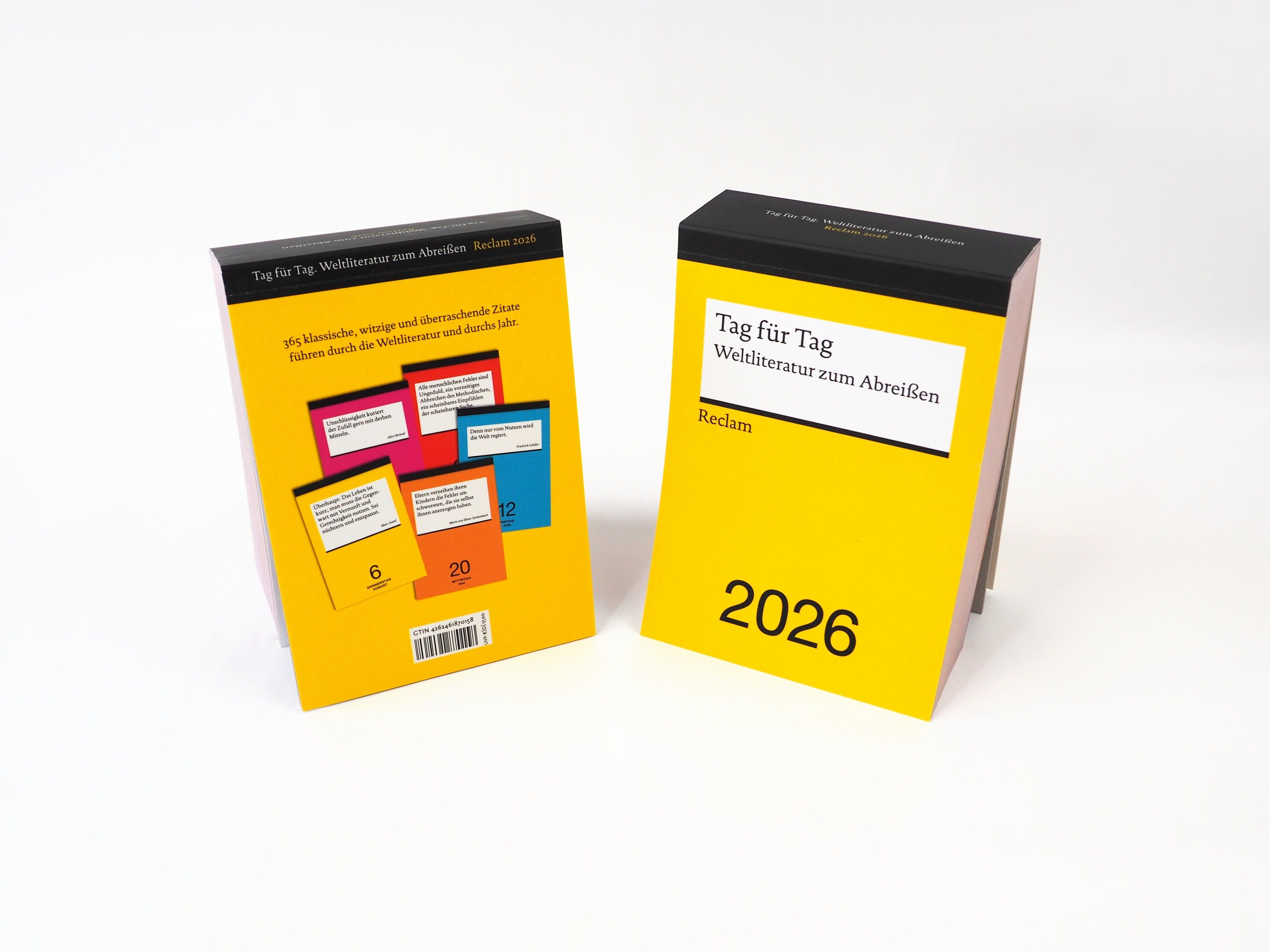 Für die tägliche Dosis Weltliteratur: Tagesabreißkalender 2026 mit Zitaten berühmter Schriftsteller:innen Der Tageskalender für 2026 im kultigen Reclam-Design begeistert und inspiriert mit 365 klassischen, witzigen und überraschenden Zitaten aus der Weltliter...