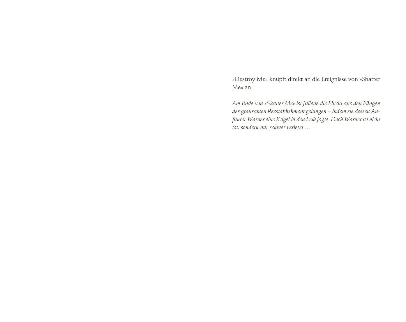Was bisher unerzählt blieb ... Die 17-jährige Juliette Ferrars hat eine ebenso faszinierende wie erschreckende Gabe: Sobald sie einen anderen Menschen berührt, nimmt sie ihm die Lebenskraft ihre Berührung ist qualvoll und tödlich. Diese Gabe hat sie ihr Leben ...