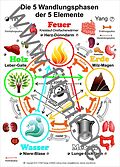 Die 5 Wandlungsphasen der 5 Elemente: Holz, Feuer, Erde, Metall und Wasser. Die Fünf-Elemente-Lehre wird auch als Lehre der Fünf Wandlungsphasen bezeichnet. Sie ist eine daoistische Theorie zur Naturbeschreibung. Sie ist grundlegende Philosophie zum Beispiel i...