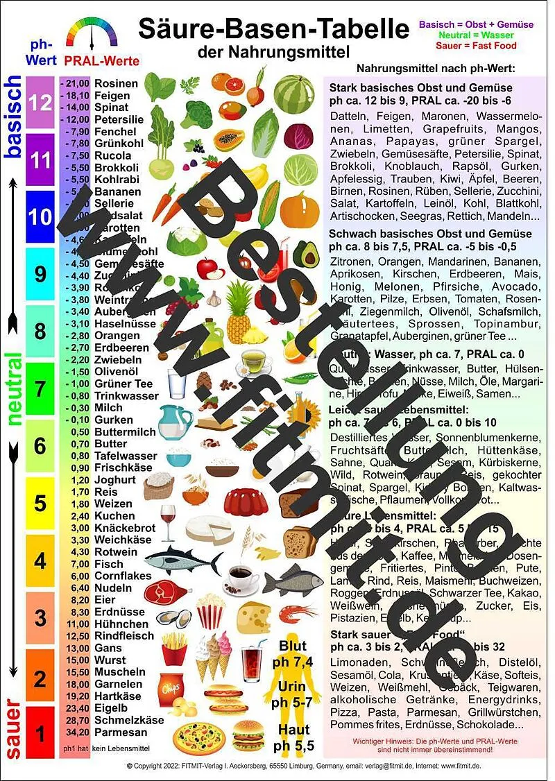 Der menschliche Körper besteht zu 80 % aus Basen und zu 20 % aus Säuren. Durch falsche Ernährung werden dem Körper heute meistens 80 % Säuren und 20 % Basen zugeführt, was gesundheitsschädlich ist. Allerdings sind Lebensmittel, die sauer schmecken, nicht autom...