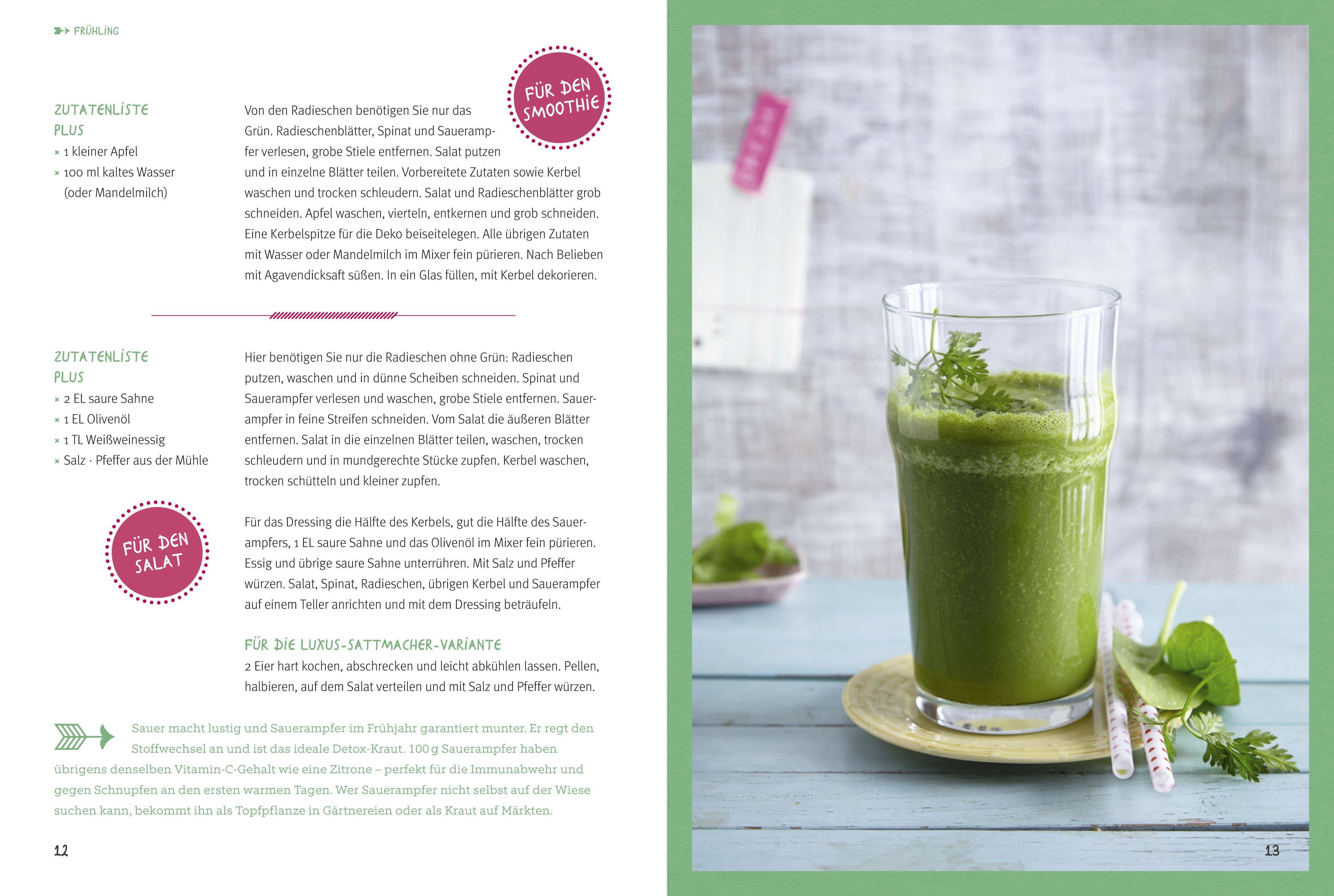 1 Einkauf, 2 Varianten: Sich ganz spontan entscheiden, ob gerade Salat oder Smoothie leckerer ist. Denn warum sollte man Radieschen, Babyspinat, Sauerampfer und Co. nur als Salat essen? Oder immer alles gleich mixen als Smoothie? Mit Tanja Dusys neuem Buch ge...