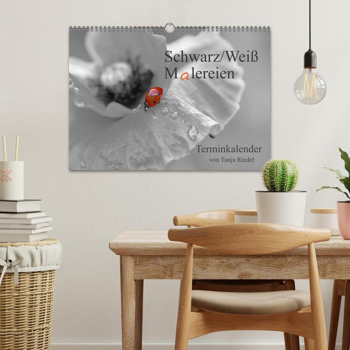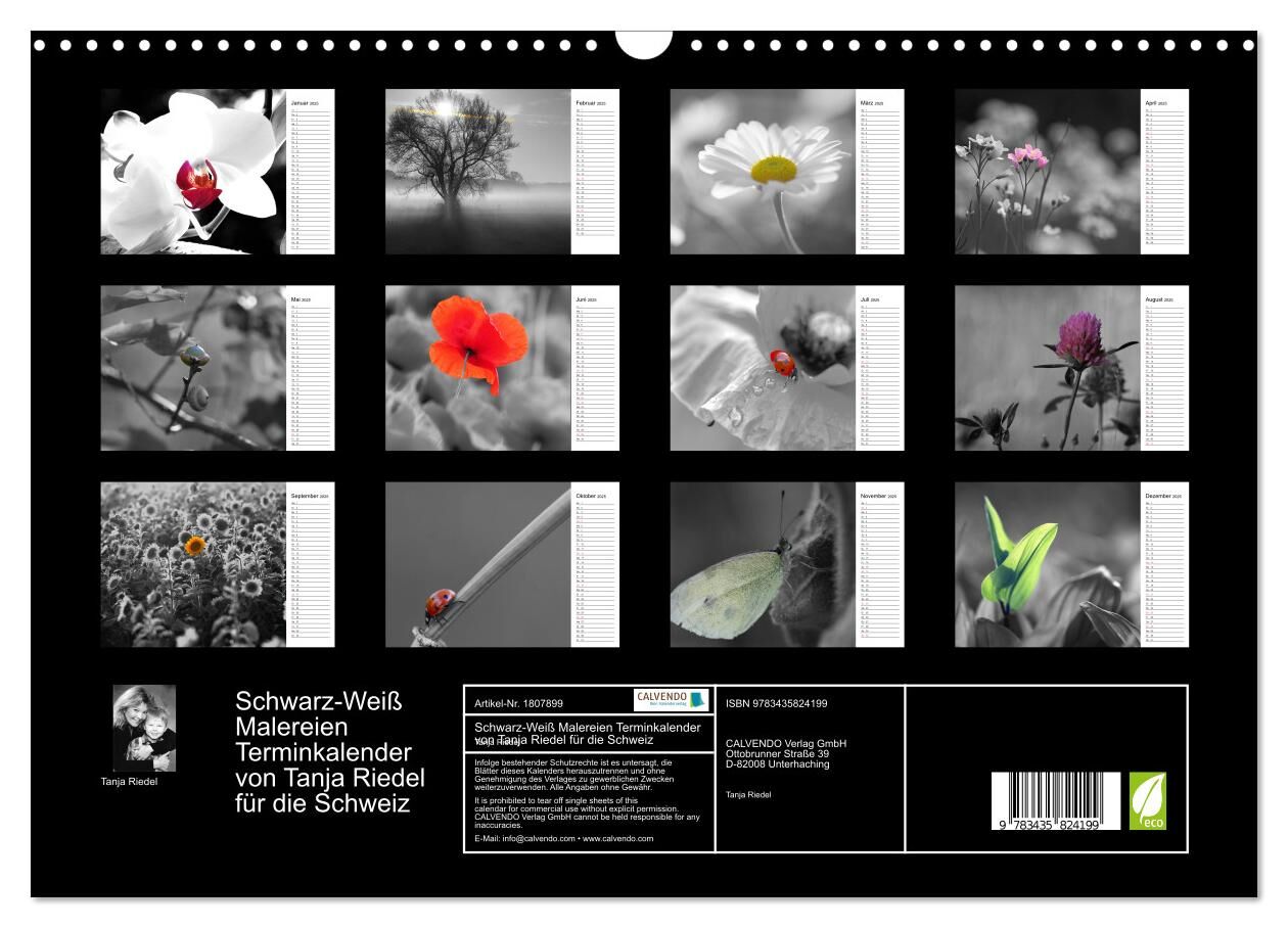 Schwarz-Weiß Malereien Terminkalender von Tanja Riedel für die Schweiz (Wandkalender 2025 DIN A3 quer), CALVENDO Monatskalender