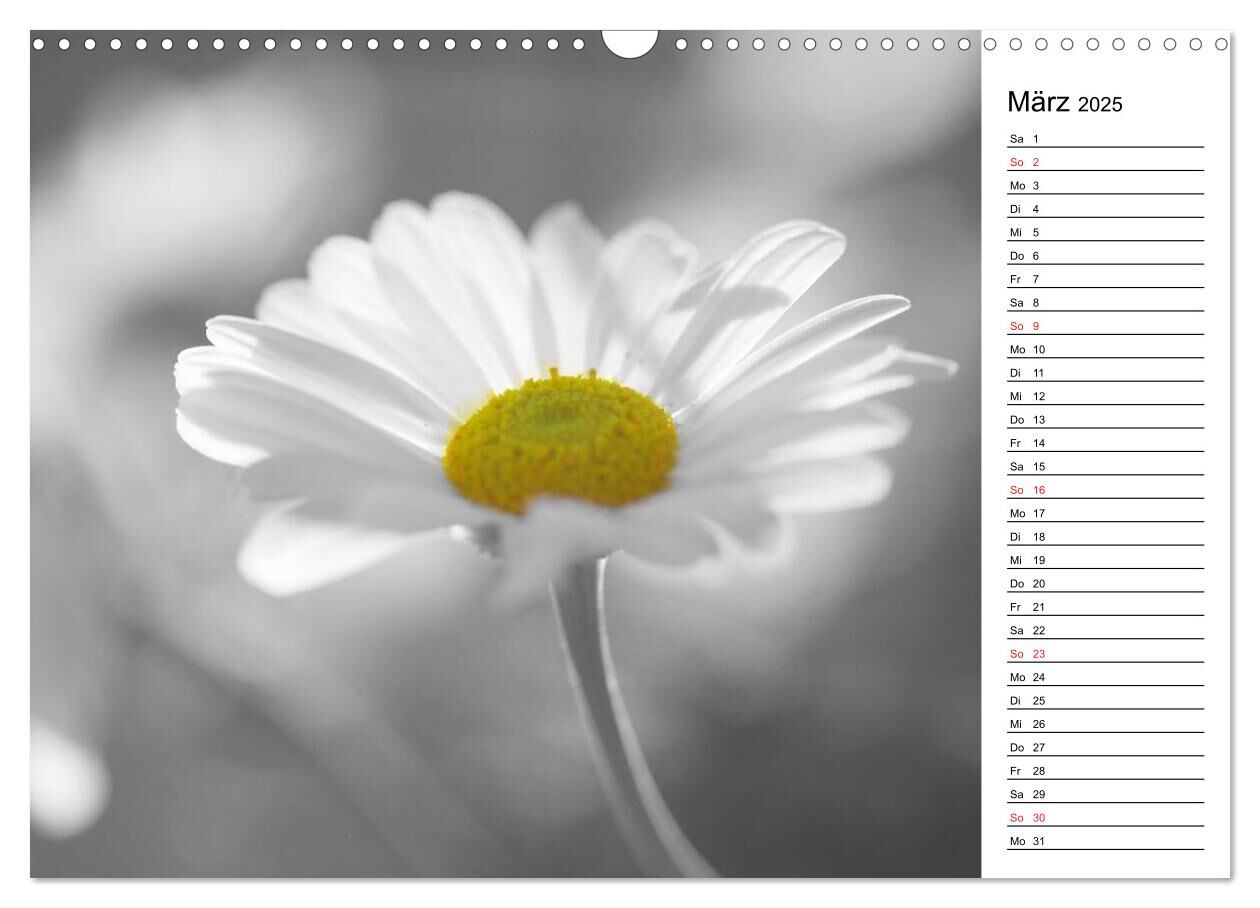 Ein Kontrastreicher schwarz-weißer Foto Terminkalender mit einem Hauch von Farbe im Bild. Edles Design in der Fotografie Naturaufnahmen mit kleinen Farbtupfern als tollen Akzent im Bild zeichnen diesen fantastischen Kalender aus.