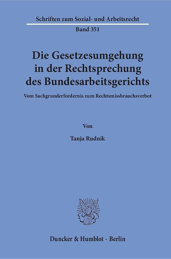 Anhand der Methodenlehre untersucht Tanja Rudnik die Rechtsprechung des BAG zur Gesetzesumgehung von 1960 bis heute. Aufgezeigt werden methodische Abweichungen zum allgemeinen Zivilrecht, die sich nicht durch arbeitsrechtliche Besonderheiten rechtfertigen lass...