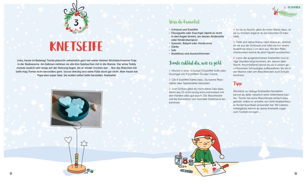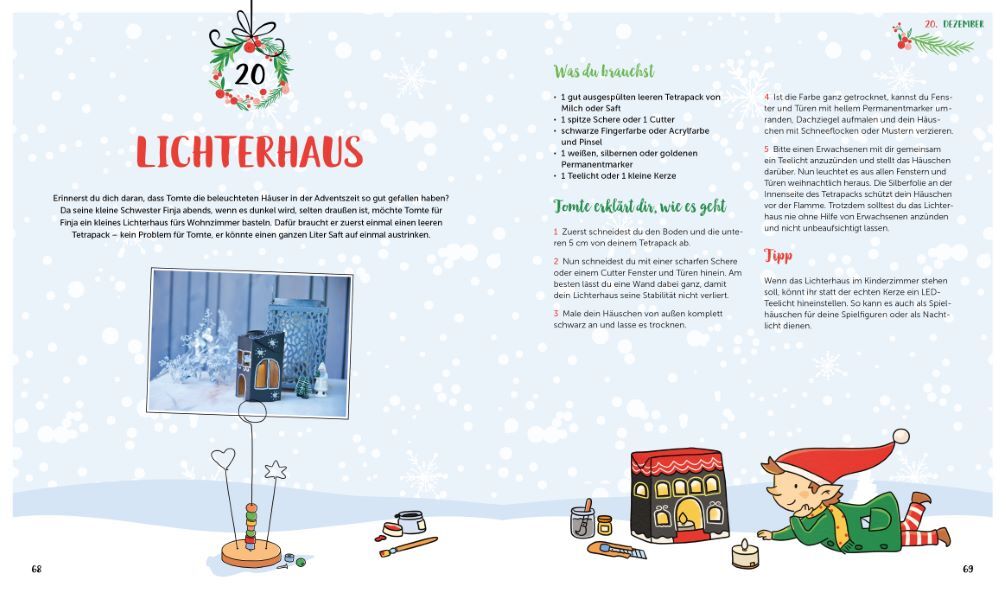 Heute, Kinder, wirds was geben! Schon einmal von Streichholzkeksen, Pompon-Schneemännern, Sternschnuppen-Wurfbällen und Teelicht-Propellern gehört? In diesem Buch stecken 24 Bastel-, Spiel- und Backideen für die Vorweihnachtszeit. Wie bei einem echten Adventsk...