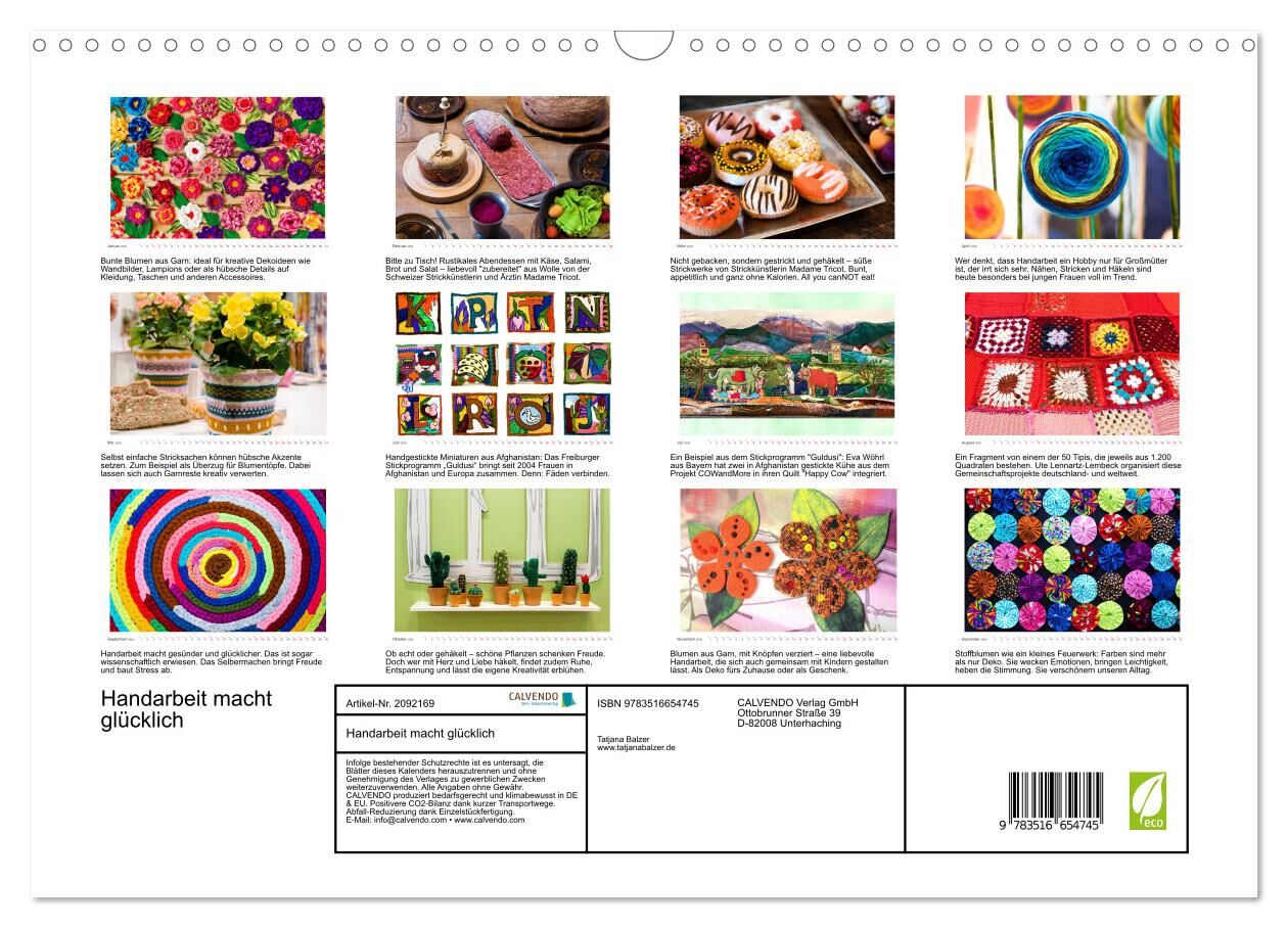 Handarbeit macht glücklich (Wandkalender 2026 DIN A3 quer), CALVENDO Monatskalender