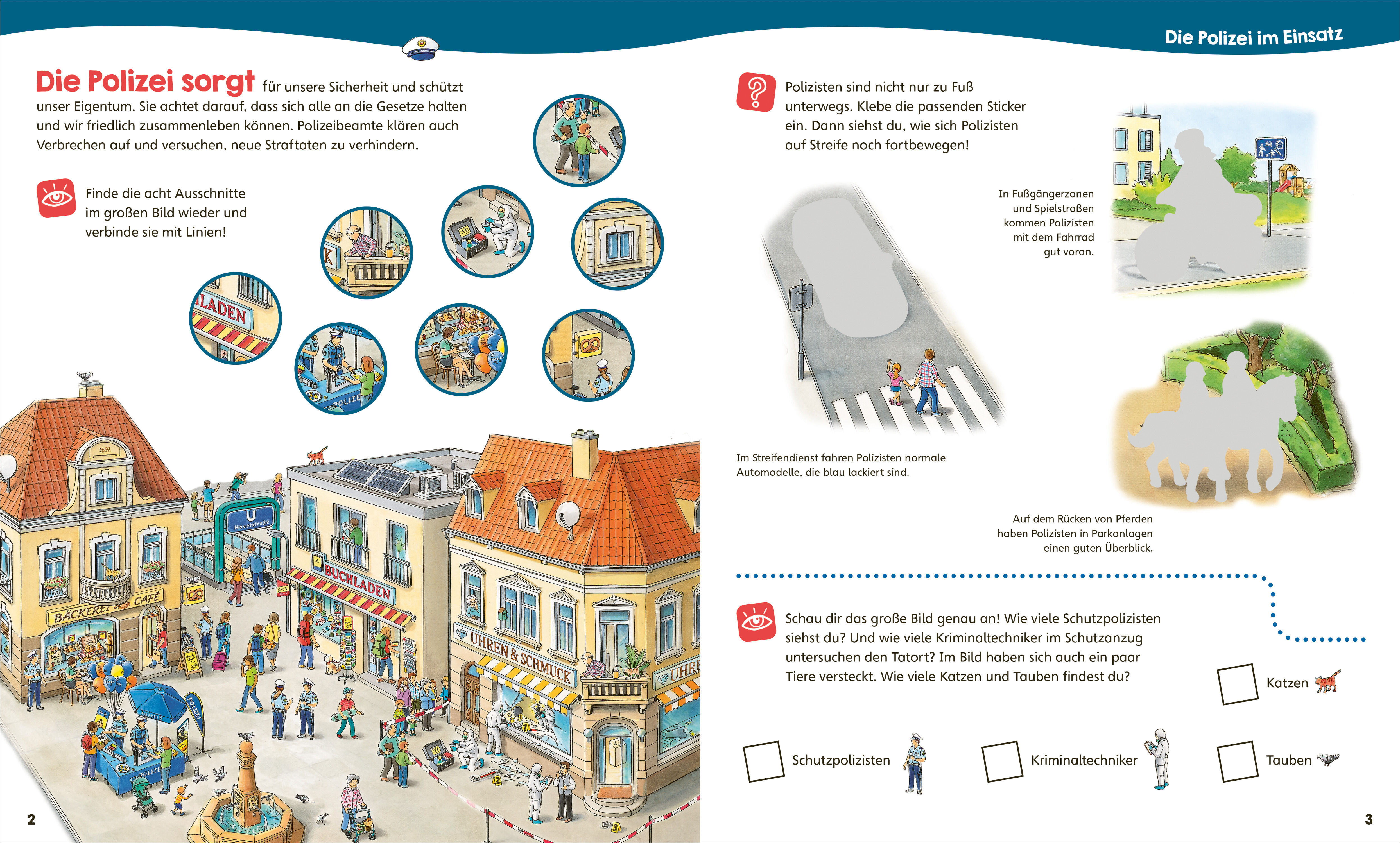 Schutzpolizisten, Verkehrspolizisten oder Kriminalpolizisten: Kinder sind fasziniert von der Arbeit unserer Gesetzeshüter. Der bunte Beschäftigungsspaß bringt ihnen das vielfältige Betätigungsfeld der Polizei mit tollen Bildern zum Ausmalen und Weiterzeichnen ...