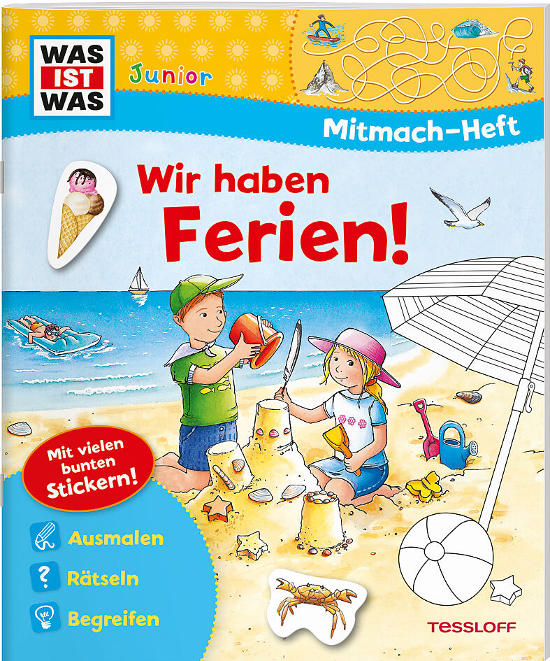 Sommer, Sonne, Ferienzeit! Ein Eismobil ausmalen, ein Sommer-Sudoku lösen, eine Sandburg mit Muschel-Stickern verzieren oder dem Wanderer den Weg durch das Labyrinth hinauf zum Berggipfel zeigen dieses bunte Mitmach-Heft sorgt mit fröhlichen Ausmalbildern, kni...
