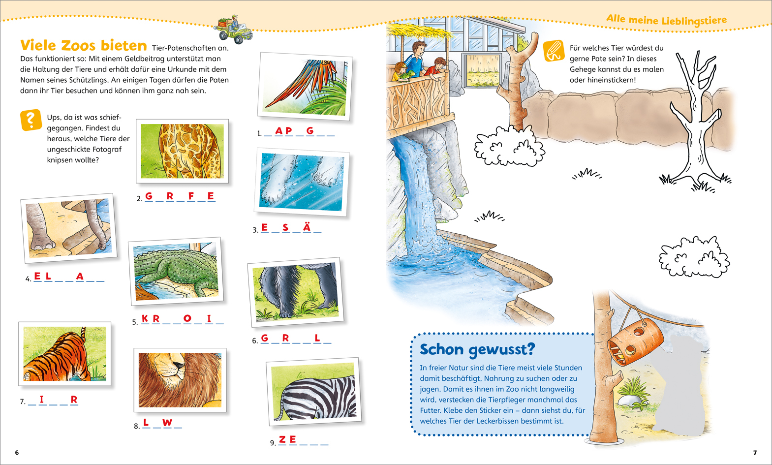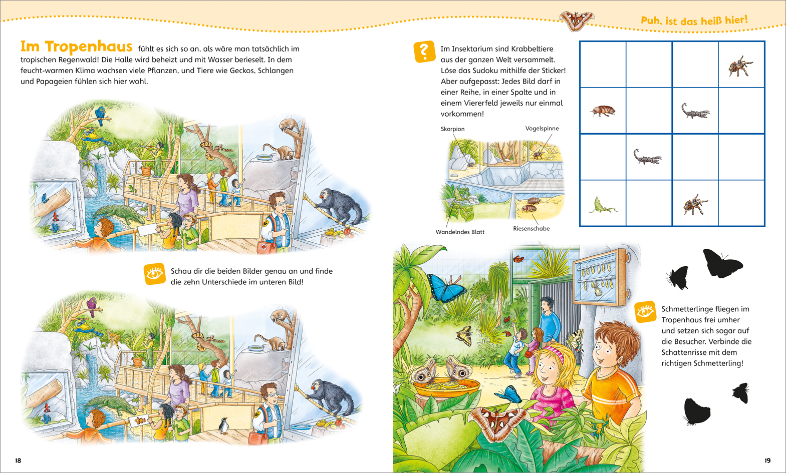 Die Seelöwen im Wassergehege zählen, dem süßen Zebra ein schönes Streifenmuster zeichnen, den Tiger durch das Labyrinth führen diese und viele weitere Aufgaben erwarten Kinder ab 4 Jahren im Mitmach-Heft Zoo. Neben Rätseln und Ausmalbildern erfahren sie jede M...