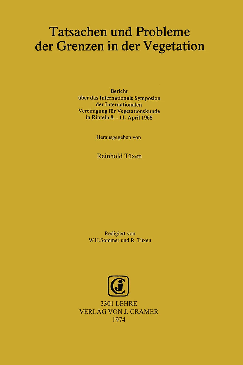 Ordination, classification and vegetational boundaries.- On abstract and concrete boundaries, arranging and classification.- Stufen und Formen von Vegetationsgrenzen und ihre methodische Annäherung.- Zur mathematischen Bestätigung der tabellarischen Abgrenzung von Pflanzengesellschaften.- Small-scale vegetational boundaries; on their analysis and typology.- Eine Methode rechnerischer Aufstellung und Abgrenzung der Vegetationstypen.- Aplication d'un processus de classification numerique à des données phytosociologiques.- Die Rolle des Maßstabes bei der Abgrenzung von Vegetationseinheiten.- Ein mechanisch-elektromagnetisches Gerät zur Schnellbearbeitung pflanzensoziologischer Tabellen.- Die Erstbesiedlung natürlicher Körperhöhlen des Menschen durch Microflora.- Das vaginale Ecosystem und seine Grenzprobleme.- Über die Grenzbereiche der Pilzvegetation.- Cyanophyten unter Grenzbedingungen der Photosynthese.- Die Form der Bäume an der Baumgrenze in der subalpinen Stufe in Zentral-Japan und ihre Auswertung als lokalklimatisches Kennzeichen.- Bemerkungen zur Saum-Mantel-Frage.- Einige Bemerkungen zu den Saumgesellschaften.- Bemerkungen zur Problematik Wald-Mantel-Saum in Ökologischer Sicht am Beispiel eines intrazonalen thermo- und hygrophilen Vegetationskomplexes: Die Auenwälder des Oberrheingrabens.- Maritime Waldgrenzen in Europa und Japan.- Aktuelle und potentielle Grenzen des Latschengürtels im Quellgebiet des Lech (Vorarlberg).- Wald- und Baumgrenze in den Vogesen.- Vegetationsgrenzen an Vulkanen.- Grenzprobleme in australischen Landschaften.- Vegetationsgrenzen und Bodenreaktion.- Die Vegetationskunde als entscheidender Gesichtspunkt bei Ermittlung pflanzengeographischer Grenzen.- Die Ermittlung von Vegetationsgrenzen bei der Konstruktion von Kartenkleineren Maßstabes (Bayernkarte).- Zur Abgrenzung der heutigen potentiell natürlichen Vegetation in waldarmen Gebieten Nord- und Westdeutschlands.- Possible mapping schemes for the heath and bog vegetation of north-west Ireland.- Zur Abgrenzung von Übergangskomplexen.- Bemerkungen zum Problem der Assoziationsbegrenzung.- Zur Synchorologie der Dünenvegetation an der chilenischen Küste.- Beobachtungen über Abgrenzung und Grenzen der Tomenthypnum-Tundra Südost-Spitzbergens.- The colonization of plants on Surtsey and its value in ecological studies of an island-flora.- Die Nord- und Süd-Grenze der Buchenwälder in der ostasiatischen Inselkette.- Über Areale (Grenzen) einiger Buchenwald-Gesellschaften Japans.- Boundaries on vegetation maps.- Schlußwort.- Resolution: Schutz der Insel Surtsey, Island.