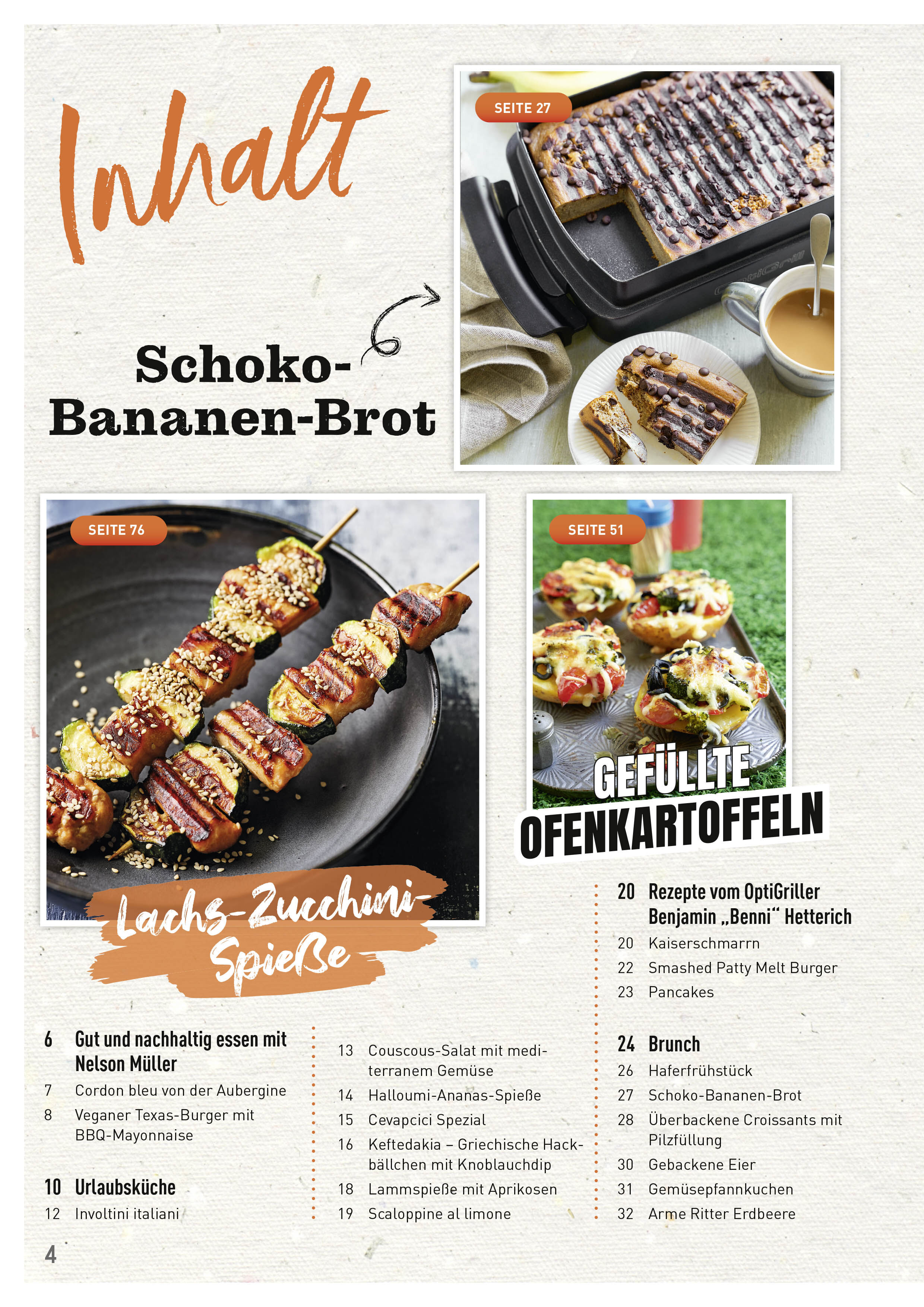 Endlich da: Das neue OptiGrill-Magazin! Die neue Ausgabe des OptiGrill-Magazins versorgt Euch mit der ganzen Bandbreite an unwiderstehlichen Gerichten frisch von der Grillplatte: Mit den besten Rezepten aus der Urlaubsküche könnt Ihr Euch entweder perfekt kuli...