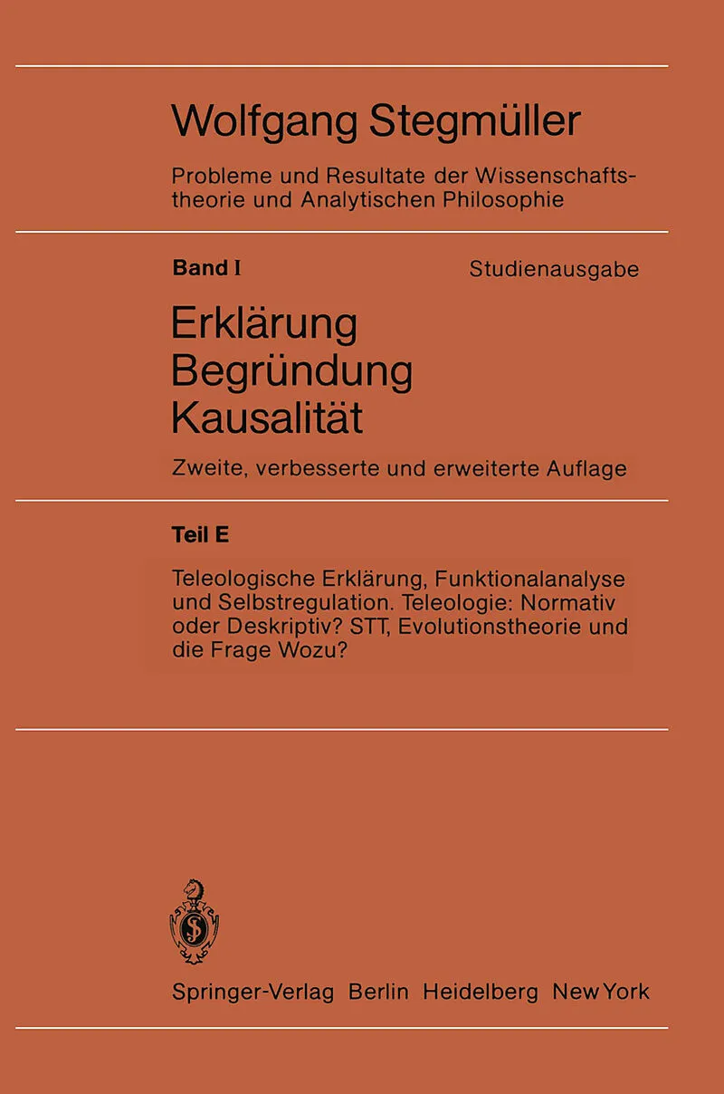 Inhalt VIII. Teleologie, Funktionalanalyse und Selbstregulation.- 1. Einleitung und Überblick.- 2. Formale Teleologie.- 3. Zielgerichtetes Handeln. Zum Problem der ontologischen und semantischen Interpretation echter materialer teleologischer Erklärungen.- 4. ...