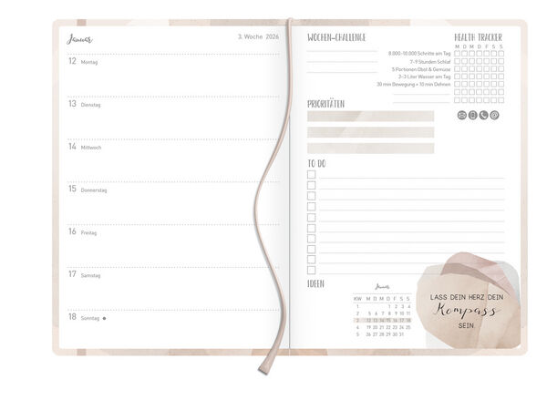 Produktmerkmale Buchkalender im Format: 13 x 18,5 cm, 128 Seiten, umweltfreundliches FSC Papier Praktische Wochenübersicht; Jede Kalenderwoche auf einer Doppelseite Deutsches Kalendarium mit Feiertagen und Ferienzeiten für Deutschland, Österreich und Schweiz ...